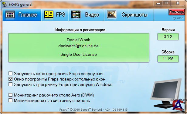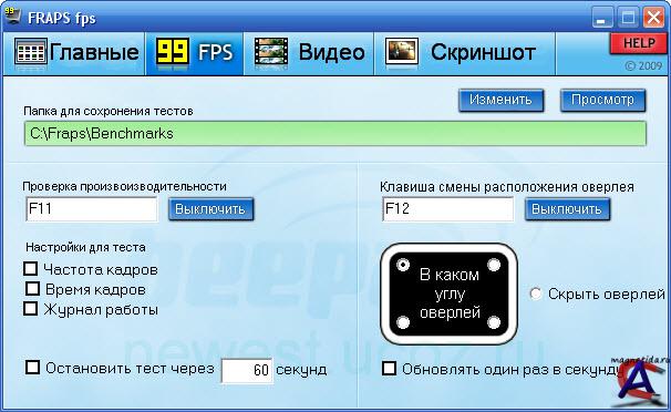 Описание: Fraps - программа предназначенная для подсчета количества FPS (кадров в секунду) в приложениях, работающих в режимах OpenGL и Direct3D. Утилита умеет делать скриншоты и записывать видеоролики с изображением с экрана. Это универсальное приложение, способное работать со всеми играми, использующими технологии DirectX или OpenGL. Управлять программой можно не выходя из игры, при помощи горячих клавиш. Главное, заранее убедитесь, что горячие клавиши Fraps не совпадают с клавишами, используемыми в игре. С помощью Fraps можно запечатлеть самые лучшие моменты не только в виде единичных кадров, но и в движении со звуком. Позволяет вывести статистику значений параметра кадров за одну секунду, записав ее в файл, или же отобразить счетчик в одном из углов экрана. Сохраняет отдельные кадры по нажатию горячей клавиши.