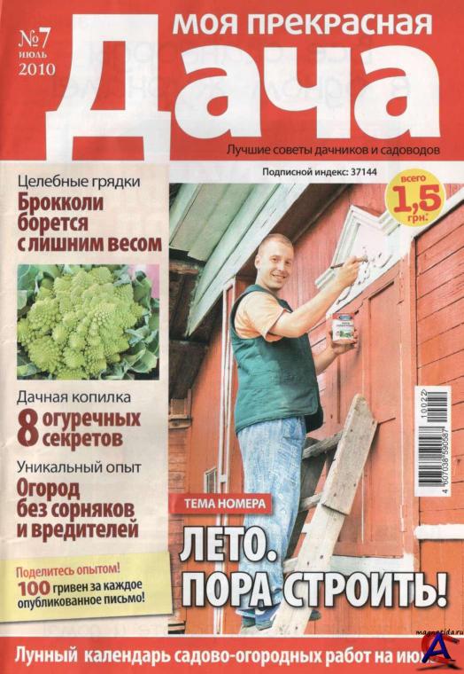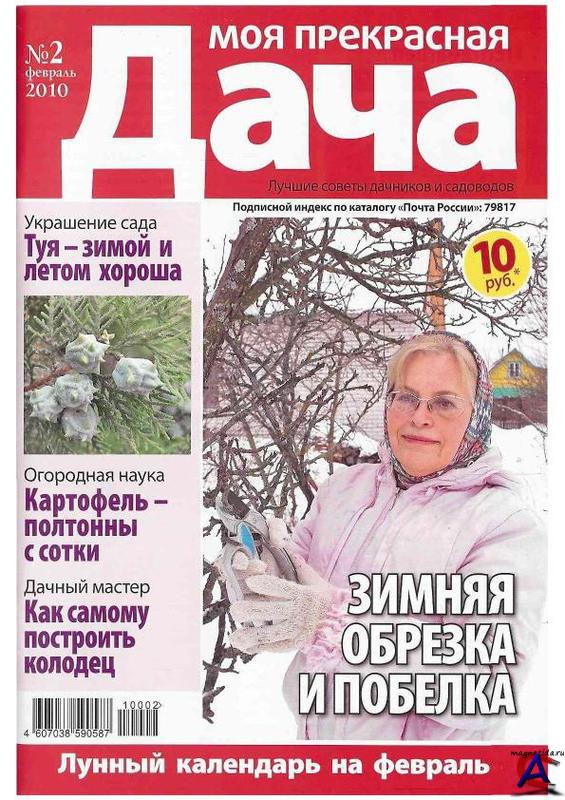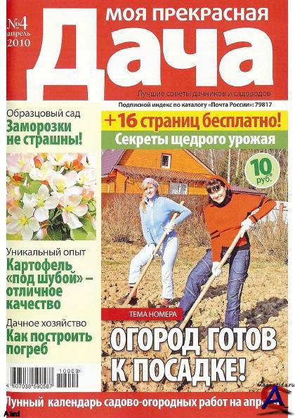 Год выпуска: 2010 Гл.редактор: Бобков В. Жанр: Садоводство Издательство: ИД «Вкусный мир» Формат: PDF / DjVu Качество: Отсканированные страницы Количество страниц: 66-74 Язык: Русский Описание: Моя прекрасная дача - ежемесячный журнал, почти целиком составленный из писем читателей – садоводов и огородников, в которых они делятся опытом друг с другом: обустройство дачного участка, дома и газона, народные приметы, лунный календарь и многое другое. Помимо этого даются советы специалистов. Для маленьких читателей – «детская грядка».