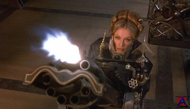 Качество: dvdrip Видео кодек: DivX 5 720x416 25.00fps Аудио кодек: Dolby AC3 48000Hz 6ch 384kbps Жанр: фантастика, боевик, комедия, вестерн, Перевод: дубляж Премьера в мире: 30 июня 1999 Премьера в РФ: 7 марта 2000 Рейтинг mpaa: PG-13 - Детям до 13 лет просмотр не желателен Продолжительность: 106 мин. Информация о фильме: Два суперагента 70-х годов прошлого века, располагающие технологическими штучками, спасают президента США Гранта от злодея-изобретателя Лавлэйса, ведущего борьбу за обладание южными штатами. Обозленный на весь мир, безногий калека при отсутствии детородного органа окружил себя целым гаремом красавиц, чем, вероятно, постоянно поддерживал в себе накал ненависти.Один из суперагентов лихой и обаятельный чернокожий стрелок Джим Уэст, а другой Артемус Гордон, белый джентльмен с манерами англичанина. На их стороне и знойная красотка Рита, плененная гигантским механическим пауком.