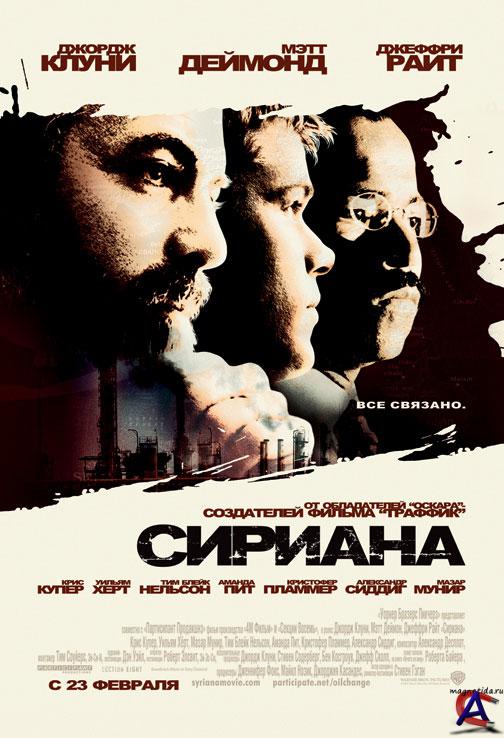Качество: dvdrip Видео кодек: Xvid 720x304 23.98fps Аудио кодек: Dolby AC3 48000Hz 6ch 384kbps Жанр: триллер, драма, Перевод: дубляж Премьера в мире: 23 ноября 2005 Премьера в РФ: 23 февраля 2006, «Каро-Премьер» Рейтинг mpaa: R - Лицам до 17 лет обязательно присутствие взрослого Продолжительность: 126 мин. Информация о фильме: Роберт Баер ветеран ЦРУ, проработавший в агентстве 21 год. Все это время он боролся с терорризмом во всем мире. Однако, после окончания «холодной войны», когда угроза терроризма возросла, ЦРУ урезало финансирование проектов на Ближнем Востоке и в итоге потеряло контроль над стратегически важным регионом.Борьба разгорается с новой силой и приобретает личный характер, когда руководитель нефтяной компании Брайан Вудман готовится совершить сделку с шейхом одной из стран Ближнего Востока, богатой нефтью, и, в то же время, переживает серьезную семейную трагедию со своей женой Джули