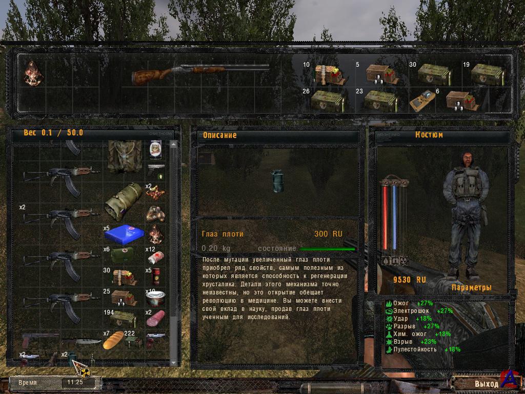 Платформа:PC Тип издания:Пиратка Язык интерфейса:Русский Язык озвучки:Русский Таблетка:Не требуется Описание:Создавая данную сборку автор в первую очередь задумывался над атмосферой и возвращением вырезанных и необходимых возможностей которые сделают игру максимально интересной и максимально труднопроходимой. Мод полностью превосходит любые другие модификации в направлении стабильность/баланс/атмосфера. СПИСОК НОВОГО: 12 новых локаций Рыжий Лес Лиманск Госпиталь Генераторы Болота Логово Лесная чаща Военная лаб-рия Атп Темный Лес Заброшенное Село Тоннель Х13 Вырезанные Костюмы Сон в спальном мешке Ремонт и улучшение(система чн) Сложное Вступление в Долг Свободу Наемников Монолит Драконов и Чистое небо Новые квесты за все Группировки и у новых нпс Фриплей Отключены мертвые зоны на чаэс 2 Оружие ПКМ Слонобой ТОЗ 34 из билда Снайперская Винтовка Hk416 Steyr Aug A3 + коллиматор + оптика FN2000 из билда FAMAS P3 ПЗРК ИГЛА Глок Возвращена погода Выброс и динамические аномалии Можно играть на гитаре губной гармошке слушать рацию и радио Сталкерши Оружие не убирается в зонах убора Новые переходы Отключены ВСЕ ограничения на обитателей так что вы вполне можете встретить знакомых персонажей совсем не там где ожидали На всех новых локациях есть живность тайники аномалии и на одной из локаций есть даже легендарное по книгам поле артефактов Новый Худ Из зова припяти и адаптированный мной худ инвентаря под тень можно драться кулаками а нож имеет свой вес и место в инвентаре Новый аи у монстров Исправлен Бамп тел Изменена озвучка Активация артефактов Динамические новости Новые текстуры Новые анимации из чн Добавлены проводники Создание тайников Добавлено 4 новых гранаты Улучшен Аи Восстановлены монстры Снятие денег с трупов и другие более мелкие изменения Системные требования: Минимальные: Microsoft® Windows® XP (Service Pack 2)/Microsoft® Windows® 2000 SP4, Intel Pentium 4 2 ГГц/AMD XP 2200+, 512 Мб ОЗУ, 10 Гб свободного места на жестком диске, 128 Мб DirectX® 8.0 совместимая карта/ nVIDIA® GeForce™ 5700/ATI Radeon® 9600, DirectX® 9.0 совместимая звуковая карта, Кабельное или xDSL подключение с низкими задержками для игры по LAN/Internet, клавиатура, мышь Рекомендуемые: Intel Core 2 Duo E6400/AMD Athlon 64 X2 4200+, 1 Гб ОЗУ или выше, 256 Мб DirectX® 9.0c совместимая карта/ nVIDIA® GeForce™ 7900/ ATI Radeon® X1950 Как устанавливать:Разпаковать архив. Все эти три файла установить.Там появится три папки и из каждой папки покидать в оригинал ТЧ. Там будет три gamedata папки и вставляя НЕ ЗАМЕНЯТЬ эти папки а ПОКИДАТЬ в одну. ВЕРСИЯ РЕКОМЕНДУЕТСЯ 1.0004.