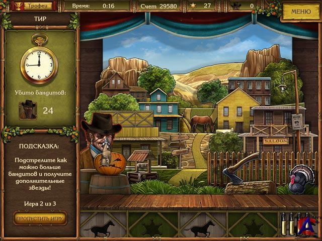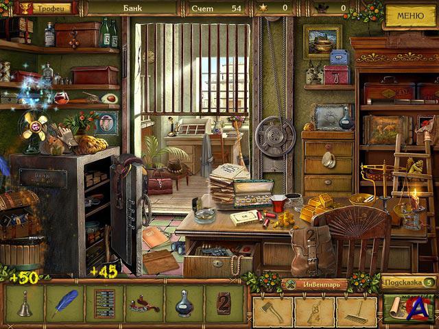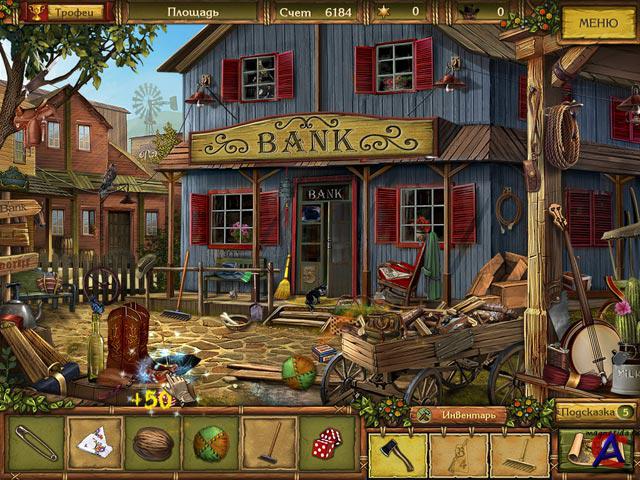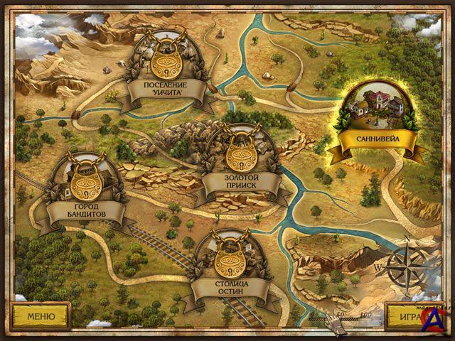 Золотые истории. Западная лихорадка: PII-600 / 64M RAM / 16M Video 3D, Windows XP, DirectX 9.0 Неофициальное название(я) игры: Golden Trails: The New Western Rush О игре: Игра-детектив в лучших традициях вестерна. Вместе с шерифом Джеком вам предстоит расследовать ограбление банка в маленьком городке Саннивейле на самом что ни на есть Диком Западе. Расспрашивайте свидетелей, анализируйте факты, ищите доказательства и не спешите с выводами: эта история гораздо сложнее, чем может показаться на первый взгляд! В ходе расследования вы побываете в офисе шерифа и бандитском салуне, в будуарах местных барышень и заброшенных шахтах на золотом прииске, в вигвамах индейского поселения и респектабельных особняках. Главное — отыскать в каждой локации спрятанные предметы: это важные улики, которые помогут вам раскрыть преступление. Исследуйте активные области экрана, применяйте инструменты, и у вас все получится! Вместо списка предметов, которые нужно найти, в игре используется панель с их изображениями. Все диалоги озвучены, поэтому в эту яркую, красочную игру с увлекательным сюжетом смогут играть не только взрослые, но и самые юные любители компьютерных игр, которые пока что не научились читать.