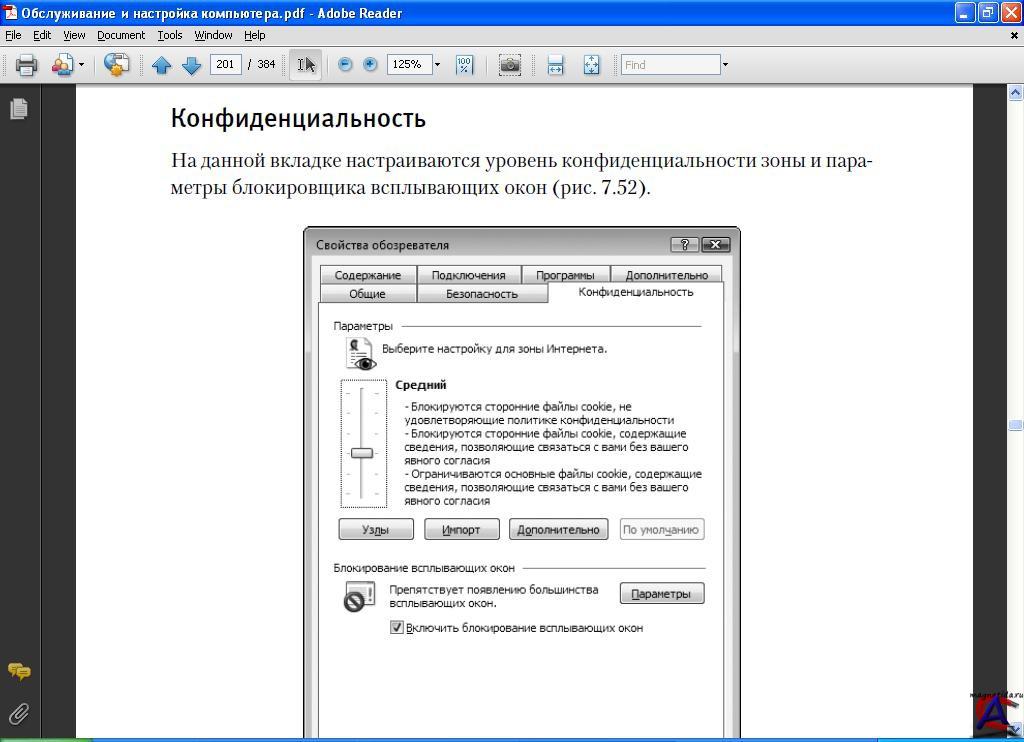 Название: Обслуживание и настройка компьютера Год выпуска: 2009 Издательство: Питер Автор: Александр Ватаманюк Жанр: прочее Язык: Русский Страниц: 384 Формат: PDF Описание: Вы купили компьютер и сразу же столкнулись с массой непредвиденных проблем? Ваша машина "тормозит", "вешается"? Регулярно возникают мелкие неполадки? Тогда эта книга - для вас! С ее помощью вы легко научитесь настраивать компьютер, конфигурировать его наиболее удобным для вас образом, а также устранять практически любые возникающие в процессе работы неполадки.