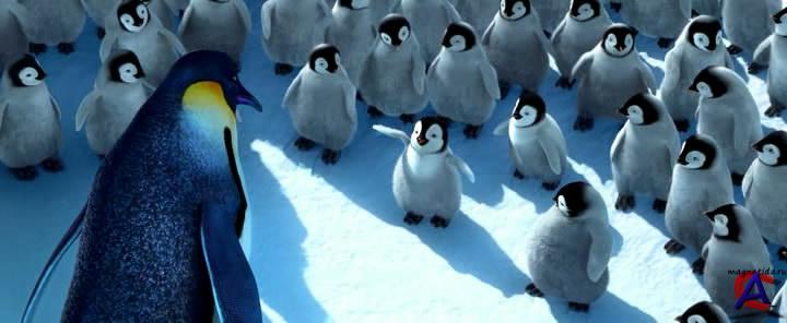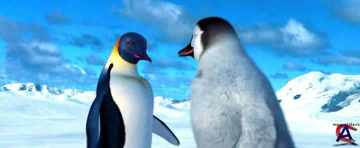 Качество: dvdrip Видео кодек: Xvid 720x296 23.98fps Аудио кодек: Dolby AC3 48000Hz 6ch 384kbps Жанр: комедия, приключения, семейный, мультфильм, музыка, Перевод: дубляж Премьера в мире: 16 ноября 2006 Премьера в РФ: 21 декабря 2006, «Каро-Премьер» Рейтинг mpaa: PG - Рекомендуется присутствие родителей Продолжительность: 104 мин. Информация о фильме: В музыкальном мире императорских пингвинов, которые находят себе пару благодаря пению, рождается пингвиненок по имени Мамбл, который не может издать ни одной ноты зато может отплясывать ту еще чечетку. Его родители, Норма Джин и Мемфис в отчаянии, но надеются, что их лишенный музыкального слуха малыш перерастет свое нелепое танцевальное увлечение. Однако пытаясь пропеть хоть какую-то мелодию, он не может перестать отбивать чечетку даже ради того, чтобы завоевать любовь своей возлюбленной Глории