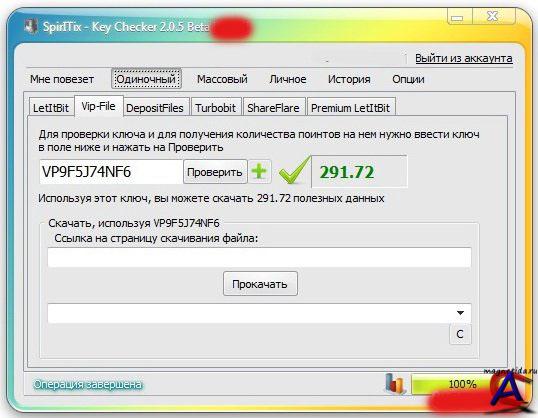 SpirITix Key Checker 2.3 Final - это финальная версия популярнейшего менеджера ключей для файлообменников. Эта программа умеет практически все: отлично проверять ключи, указывать количество поинтов, хранить ключи и прямить ссылки. Эта версия также оборудована системой криптования ключей SecurKey - которая позволяет избежать их блокировки. Эта уникальная программа уже 11 месяцев является лидером рынка и ни разу не подводила своих пользователей. Для открытия полного функционала программы, а именно функции "Мне повезет" которая позволяет используя ключи SpirITix выпрямлять ссылки, нужен аккаунт в SpirITix ID.