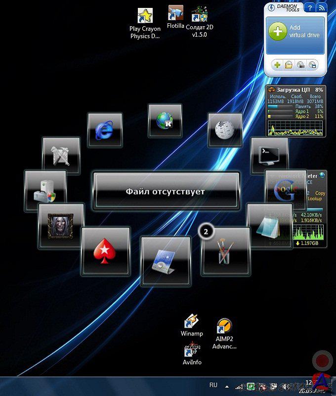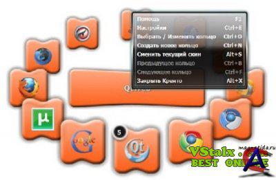 Особенности: - Перетащите файлы, папки, ярлыки и интернет-закладкаи и получите мгновенный доступ и быстрый запуск. - Легкий и быстрый запуск мышью или с клавиатуры - Мгновенный доступ в любой момент - Открытая раскладная архитектура - Совместимость скинов с Rocket Dock (30 скинов включено) - Сохранение и загрузка множествa пользовательских 3D кругов камней (колец).