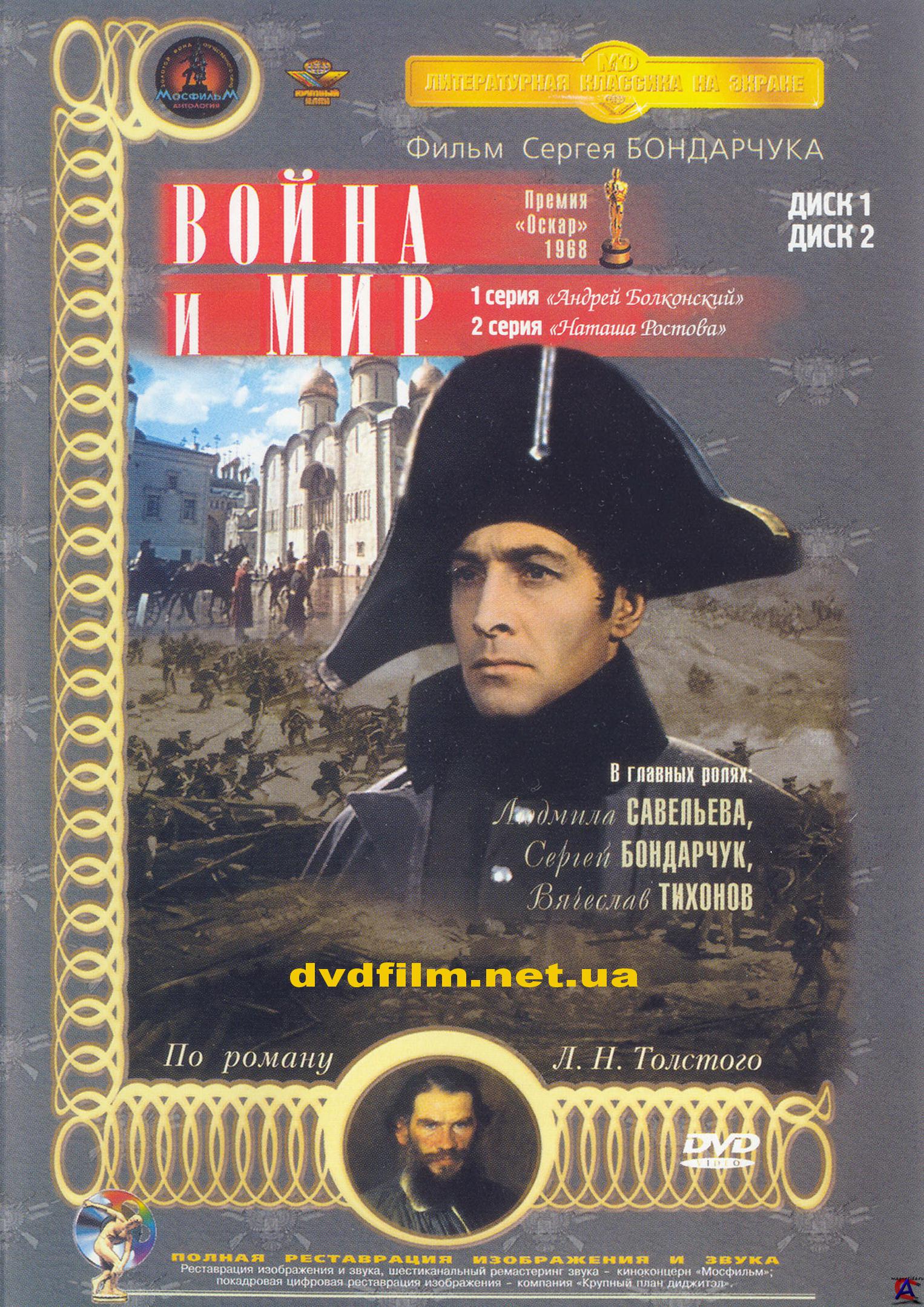 Качество: ТВ-рип. Жанр: мелодрама, драма, военный, история, Перевод: не требуется. Премьера в мире: 28 апреля 1968 Продолжительность: 373 мин. Информация о фильме: Эпическое кинополотно известнейшего советского кинорежиссера Сергея Бондарчука по роману Льва Толстого «Война и мир», с участием всех звезд советского кинематографа. Взято с kinopoisk.ru