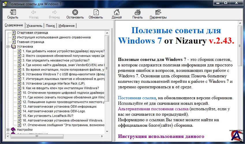 Полезные советы для Windows 7 (chm) Windows 7 Ultimate x86-x64 RU Super-Mini by Lopatkin [Программы]