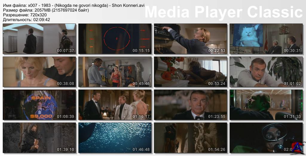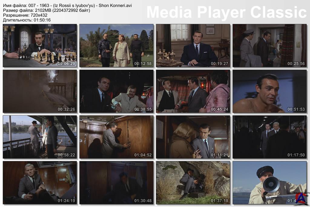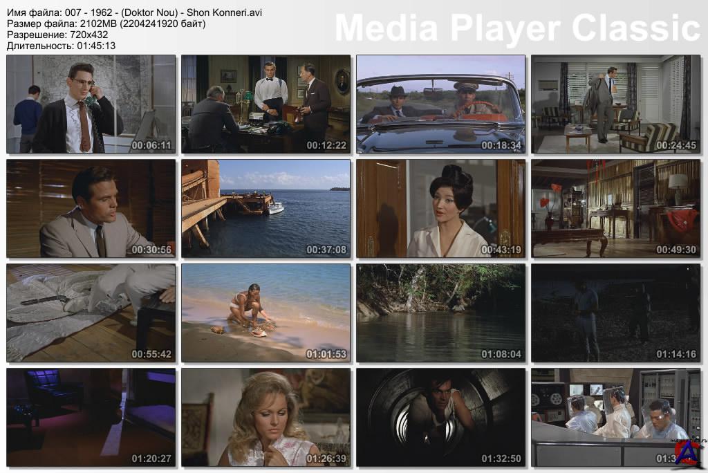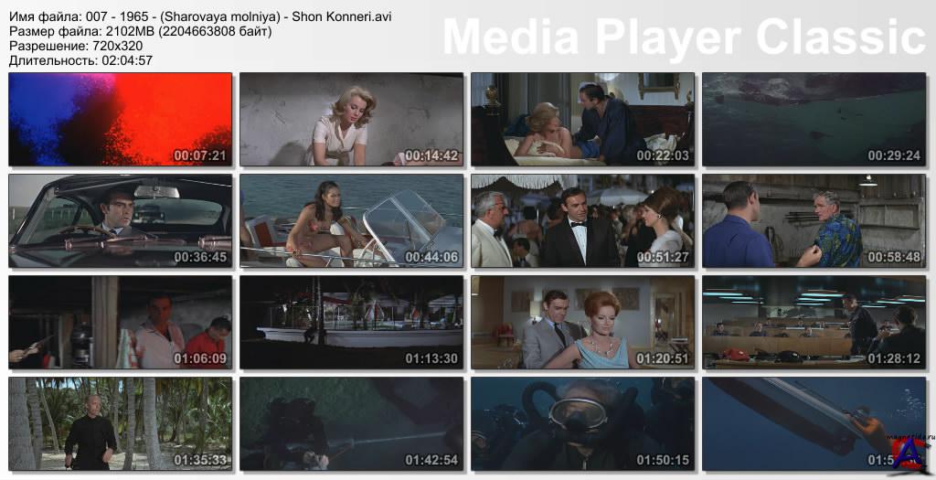 ------------------------------------------------------------------------------------------------------------------------------------------------------------------ Доктор Но / Dr. No Качество: DVDRip Формат: AVI Видео кодек: DivX Аудио кодек: AC3 Dolby Digital Видео: 640x360, 23.976 fps, ~1389 kbps avg Аудио: 48 kHz, 3/2 (L,C,R,l,r) + LFE ch, ~384.00 kbps avg Год выпуска: 1962 Страна: Великобритания Жанр: Боевик/Приключения Продолжительность: 1:49:50 Перевод: Профессиональный (многоголосый, закадровый) Русские субтитры: нет Режиссер: Теренс Янг /Terence Young/ В ролях: Шон Коннери /Sean Connery/, Урсула Андресс /Ursula Andress/, Джозеф Уайзмэн /Joseph Wiseman/, Джек Лорд /Jack Lord/, Бернард Ли /Bernard Lee/ Описание: Суперагент британской разведки Джеймс Бонд получает задание расследовать обстоятельства загадочного исчезновения на Ямайке сотрудника службы МИ-5 и его секретарши. Прилетев на Ямайку, Бонд устанавливает, что британские подданные были уничтожены по приказу некоего доктора Но, хозяина таинственного и хорошо охраняемого острова. В процессе расследования ему также придется столкнуться с могущественной структурой "Спектр"... ------------------------------------------------------------------------------------------------------------------------------------------------------------------ Из России с любовью / From Russia with Love Качество: DVDRip Формат: AVI Видео кодек: XviD Аудио кодек: AC3 Dolby Digital Видео: 640x352, 23.976 fps, ~1300 kbps avg Аудио: 48 kHz, 3/2 (L,C,R,l,r) + LFE ch, ~384.00 kbps avg Год выпуска: 1963 Страна: Великобритания Жанр: Боевик/Приключения/Триллер Продолжительность: 1:55:10 Перевод: Профессиональный (многоголосый, закадровый) Русские субтитры: нет Режиссер: Теренс Янг /Terence Young/ В ролях: Шон Коннери /Sean Connery/, Даниэла Бьянки /Daniela Bianchi/, Лотте Ленья /Lotte Lenya/, Педро Армендарис /Pedro Armendariz/, Роберт Шо /Robert Shaw/, Бернард Ли /Bernard Lee/ Описание: Второй фильм о Бонде, считающийся одним из лучших. Второе задание для Джеймса Бонда - это спасти и вывезти из социалистического государства русского агента, красавицу владеющую тайной сверх секретного шифровального аппарата Лектор, а также сам аппарат. В легко протекающую комбинацию вклинивается неизвестный до сих пор агент №1 СПЕКТРА, Эрнест Ставро Блофелд. В его задачу входит не только обострить отношения между Великобританией и Советским Союзом, вернуть в Россию Лектор за большое вознаграждение, но также отомстить за смерть Доктора Ноу, заманив Бонда в хитроумную ловушку. ------------------------------------------------------------------------------------------------------------------------------------------------------------------ Голдфингер / Goldfinger Качество: DVDRip Формат: AVI Видео кодек: XviD Аудио кодек: , AC3 Dolby Digital Видео: 608x336, 23.976 fps, ~1380 kbps avg Аудио: 48 kHz, 3/2 (L,C,R,l,r) + LFE ch, ~384.00 kbps avg Год выпуска: 1964 Страна: Великобритания Жанр: Боевик/Приключения/Триллер Продолжительность: 1:50:00 Перевод: Профессиональный (многоголосый, закадровый) Русские субтитры: нет Режиссер: Гай Хэмилтон /Guy Hamilton/ В ролях: Шон Коннери /Sean Connery/, Жер Фроб /Gert Frobe/, Хонор Блэкмэн /Honor Blackman/, Шерли Итон /Shirley Eaton/, Бернард Ли /Bernard Lee/, Хэролд Саката /Harold Sakata/ Описание: На этот раз Джеймс Бонд борется со злом в лице международного преступника Голдфингера. Негодяй планирует уничтожить золотой запас США, и таким образом ввергнуть в пучину хаоса все капиталистическое общество. Помешать этим дерзким планам может только один человек. При помощи нескольких прекрасных женщин и множества хитроумных приспособлений агент 007 обезвреживает злодея и ликвидирует угрозу банкротства целого государства. ------------------------------------------------------------------------------------------------------------------------------------------------------------------ Шаровая молния / Thunderball Качество: 