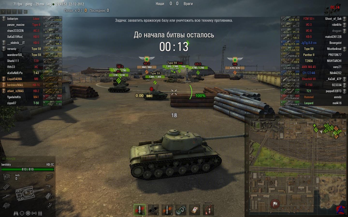 Цитата: ИС-7, ИС-4, КВ-3, КВ (152), Т-54, Объект 704, Т-50-2, Объект 261. Maus, E-100, E-75, VK4502(P) Ausf B, Lowe, Tiger II, E-50, Panther II, JagdTiger, GW Tiger. T110E5, M103, T34, M46 Patton, M26 Pershing, Т30, M18 "Hellcat", M24 Chaffee, M40/M43. AMX 50 120, Batignolles - Chatillon 25t, Lorraine 40t, AMX 13 90. Type 59. Цитата: Че возьмем чувака в клан? Пожалуй нет!!! У него нет танка нашего уровня - МС-1
