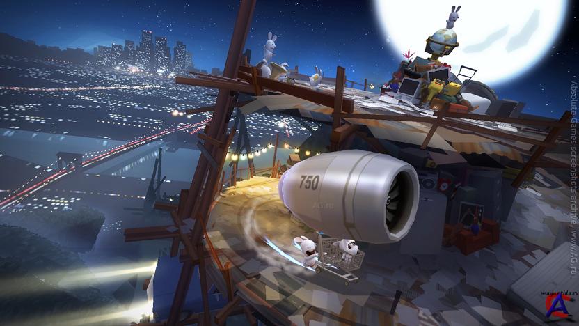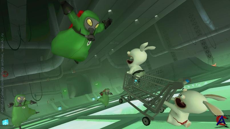 Дата выхода игры: 1 ноября 2009 г. Дата выхода игры в России: 12 августа 2010 г. Жанр: Arcade, 3D Разработчик игры: Ubisoft Montpellier Издатель игры: Ubisoft Entertainment Издатель в России: Buka Entertainment Тип издания: Репак Язык: Только русский Таблэтка: Вшита  • ОС: Win XP / Vista / 7 • Процессор: Intel® Pentium® IV 2.5 ГГц / AMD® или лучше • ОЗУ: 2 ГБ • Видеокарта: NVIDIA GeForce 8 серии (или аналогичная от ATI ) • Звуковая карта: совместимая с DirectX 9.0 • HDD: 2,5 ГБ  Бешеные кролики, твои приключения в тележке! Бешеные кролики хотят вернуться домой. Так берите тележку, собирайте вещи, свалите все в гигантскую кучу и помогите им добраться до луны! Соберите все что можете в 16 миссиях. Сражайтесь с врагами и сейте хаос в человеческом мире. Используйте абсолютно сумасшедшие средства передвижения: Прокатись верхом на реактивном двигателе! Летайте на больничных койках! Отскакивайте от стен на шине! Дайте волю Вашему внутреннему кролику!