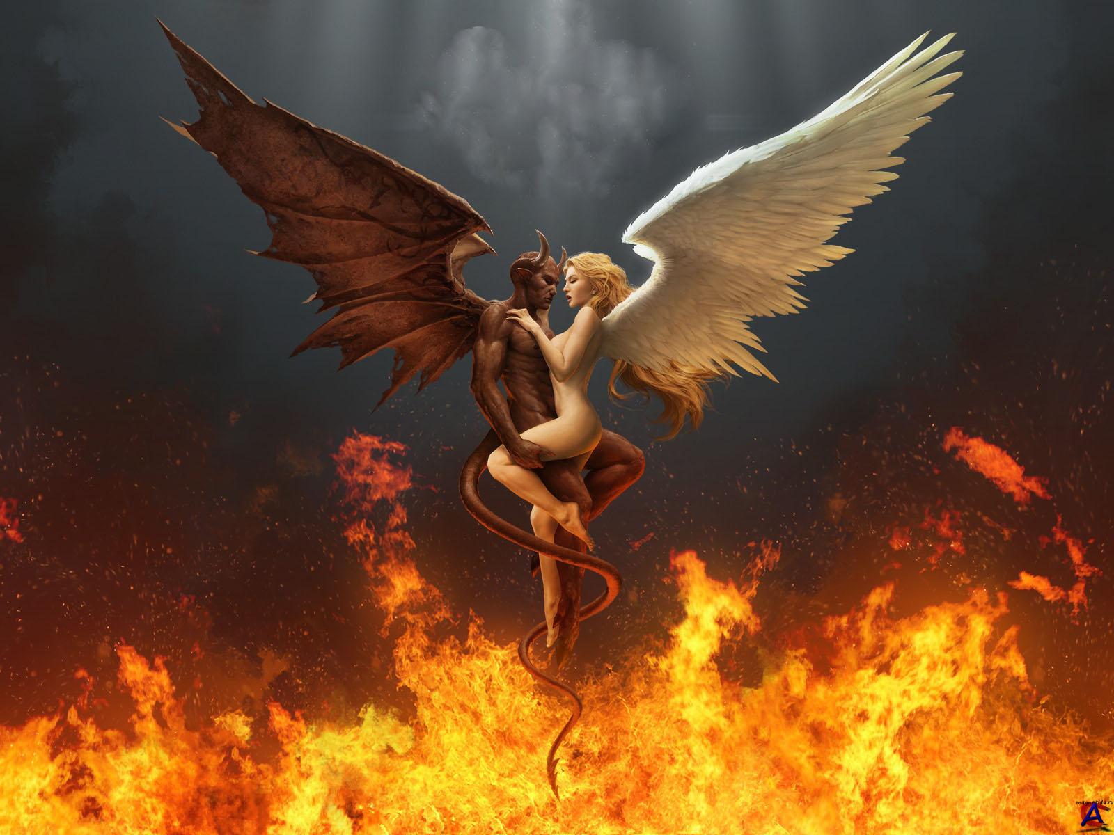 Обои на рабочий стол с ангелами и демонами. Противостояние света и тьмы.