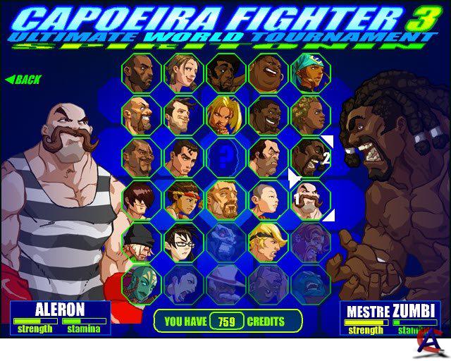 Жанр: Файтинги Язык: ENG Особенности установки игры: Присутствует (инструкция в архиве) Размер : 160 MB Capoeira Fighter - это игра, полностью посвященная афро-бразильскому боевому искусству capoeira. По сравнению с двумя предыдущими, третья часть существенно отличается своей динамикой и высококачественной графикой. В режиме SURVIVAL появилась возможность открыть 5 новых бойцов, владеющих искусствами кунг-фу, муай-тай, борьбы, шао-линь и... капоэйра. Новые удары, комбинации, захваты, отличная прорисовка персонажей и окружающей среды оставляют яркое впечатление.Имеется поддержка джойстиков. Минимальные системные требования Операционная система: Windows XP/ Vista/7 Процессор: Pentium III 800 МГц Память: 128 МБ Видеокарта: 64 МБ, DirectX 9.0c Аудиокарта: Звуковое устройство, совместимое с DirectX 9.0с Свободное место на ЖД: 400 МБ DVD-привод: Не требуется