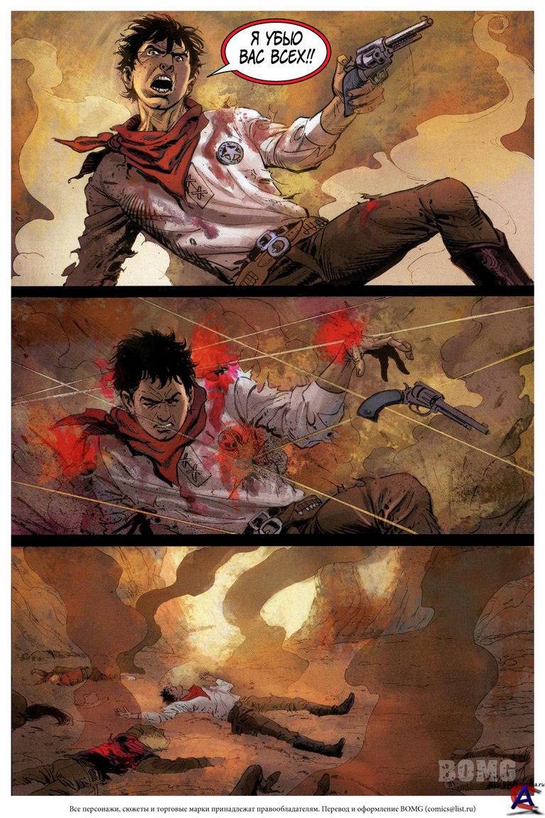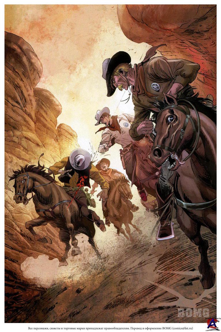 Жанр: Вестерн Издательство: Dynamite Entertainment Язык: русский Формат: cbr Обьем: 6 выпусков Описание: В основе сюжета техасский рейнджер, выживший после перестрелки с бандой головорезов. Его нашел и выходил индеец по имени Тонто (Депп). После того, как рейнджер более-менее пришел в себя, он при помощи своего нового индейского друга решил, прикрыв лицо маской и верхом на белом коне по кличке Сильвер, отомстить сначала своим обидчикам, а впоследствии и любому другому бандиту, попавшемуся ему на пути. «Одинокий рейнджер» начал свою жизнь в середине тридцатых годов в виде радиопостановки. Благодаря своей невероятной популярности, шоу уже к 1938 году смогло перерасти в полноценный телесериал, с переменным успехом шедший на американском телевидении в течение нескольких десятилетий, не говоря уж о хороших продажах сопутствующих товаров в виде комиксов и игрушек. Фраза главного героя «Вперед, Сильвер» и вовсе стала классической.