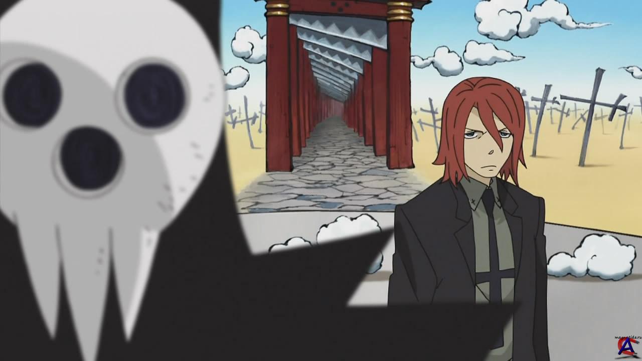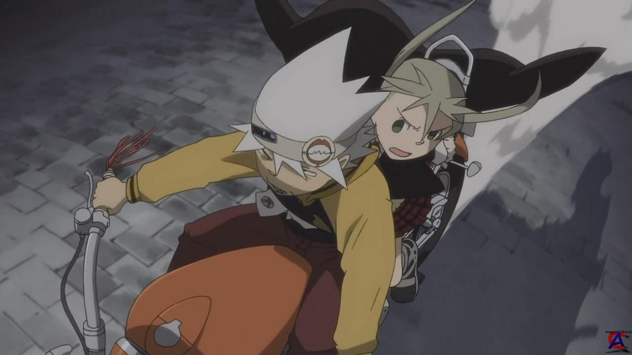 Список эпизодов: 01. Resonance of the Soul - Soul=Eater, Want To Become A Death Scythe? 02. I`m a Star For Sure! - I`m an Extremely Big Man, Can You Shoot Me Here? 03. Becoming A Flawless Boy - Death the Kid`s Mission of Splendor? 04. Witch Hunting Invocation!? - Heart Throbbing Graveyard Supplementary Class Lessons? 05. Soul`s Form - Strongest Worker Stein`s Entrance? 06. Freshman Gossip! - Lots of Memories of Kid`s First Attendance at Shibusen? 07. Black Blood of Terror - The Weapon Within Chrona? 08. Witch Medusa - Great Evil Possessing One`s Soul? 09. Holy Legendary Sword - Kid and BlackStar`s Big Adventure? 10. Demon Blade Masamune - Torn Dependant Soul, Singing Heart`s Rain? 11. Tsubaki, the Camillia - What Lies Beyond Sadness? 12. Courage that is not Lost to Fear - Maka=Albarn`s One Large Determination? 13. Man`s Demon Eyes - Soul and Maka, the Gap of the Soul`s Wavelength? 14. (Super) Written Test - Heart-Throbbing, Trembling, Nervous, Lies? 15. Black Dragon that Eats Souls ~ Cowardly Liz and Her Pleasant Companions? 16. Clash on the Ghost Ship! ~ A Hell Inside My Head? 17. Holy Legendary Sword 2 ~ Drunk, Defeated, Bought, A Virtue? 18. The Nightmare of Festival`s Eve ~ And the Curtain Rises? 19. Begin! Underground Battle! ~ Bust Through Medusa`s Vector Arrow? 20. The Resonant Battle of Blood - Facing Fear, The Small Soul`s Big Struggle? 21. Reach Out, My Soul - My Thirsty Heart, Can`t Bear the Loneliness Inside...? 22. Seal`s shrine - The trap left by the immortal man? 23. Dead or Alive! - Loophole of Revival and Illusion? 24. Battle of the Gods - Death City Collapse Crisis? 25. Calling Together! Death Scythe - Preventing Papa`s Staff Reassignment!!? 26. Happy and Embarrassing School Entrance Experience! - Shibusen`s New Life Aid Fair In Session? 27. 800 Year Old Murderous Intent - The Heretic Witch`s Descent? 28. Sword Saint Rises: A Sweet or a Salty Taste? 29. Medusa`s Revival! Spider and Snake, Fate`s Reunion? 30. Red Hot`s Wildly Run Special Express! The Demon Tool Left Behind by the Great Demon Guru? 31. Drying Happiness: To Whom Do You Shed Tears in the Moonlight Shine? 32. Holy Legendary Sword 3: Shibusen`s Gang Leader Tale? 33. Resonance Chain: Playing the Soul`s Melodies? 34. BREW Contest! Clash, Shibusen vs. Arachnophobia? 35. Mosquito`s Storm! Old Days World`s Time Limit is 10 Minutes? 36. Release, Seven People`s Resonance Chain! Concert of Creation and Destruction? 37. A Great Detective`s First Case: Shibusen`s Secret Exposed by Kid? 38. Asura`s Temptation: The Big Man`s Uncontrollable Irritation? 39. Crona`s Escape: Your Smile, Please? 40. The Shuffled Cards - Medusa Surrendering to Shibusen? 41. Round and Round It Goes - The Professor Dances, a New World? 42. Charge! Baba Yaga`s Castle - Why is Everything Suddenly so Unclear? 43. The Last Demon Tool - The Weaponless Kid`s Impossible Mission? 44. Coward Crona`s Determination - For You, Who Are Always By My Side? 45. Demonslayer`s Wavelength: Fierce Attack, Hatred of the Demon Hunter? 46. Bravery? Bloodshed? Decisive Battle, Mifune vs. Black Star? 47. The Miracle of Overturning a Table in Anger: Our Death City`s Robot? 48. The Weapon (Death Scythe) Shinigami Had: Towards Uncertainty, Filled with Darkness? 49. Asura Awakening - Towards the End of the World? 50. Taking a Gamble?! - The Men Who Surpass God 51. The Password Is Courage! Информация о фильме: Почему у супергероев вечные проблемы с освобождением вверенной территории от всяческой нечисти как в образе человеческом, так и вне него? Все просто образования не хватает. И потому в мире, где происходит действие, Бог Смерти поставил обучение своих помощников и кандидатов на роль божественного оружия на научную основу, создав Оружейный Институт, расположенный, конечно же, в Пропащем Городе. Учатся в институте две категории студентов те, кто способен превращаться в одушевленное оружие, и их напарники-мастера (называемые еще техниками). Оружие и мастер работают в паре, а лучший из кандидатов по итогам обучения получает возможность служить Косой Смерти оружием самого бога.История вращается вокруг трех групп студентов: очень старательной Маки в паре с Соулом (он превращается в косу), нарутообразного Черной Звезды в паре с Цубаки (она превращается в любое оружие ниндзя) и помешанного на симметрии Смерти-младшего, работающего с сестричками Пэт и Лиз (превращаются в пистолеты). Как и в любом вузе, процветает семейственность Мака, например, дочь нынешней Косы Смерти, а Смерть-младший вообще сын божий. Но родство не влияет на отношение к учебе, и друзья-соперники соревнуются в изничтожении нечисти честно и изо всех сил, каждый в своем стиле