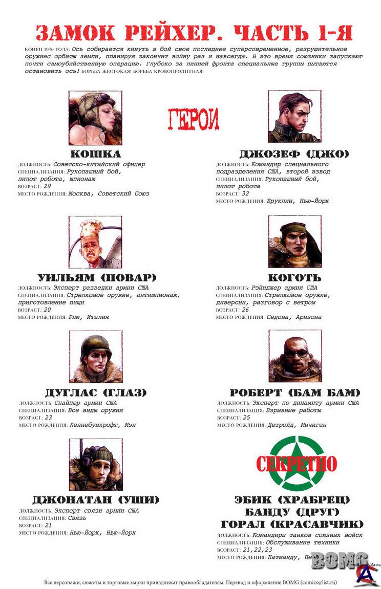 Жанр: Алтернативная история Автор: Паоло Паренте Язык: русский Формат: cbr Объем: 2 выпуска, всего 55 страниц Описание: Альтернативная история Второй Мировой войны... На исходе мирового конфликта спецподразделение союзных войск отправляют на задание сорвать планы стран оси. И не просто планы, а масштабные проекты по полному изменению хода мировой истории...
