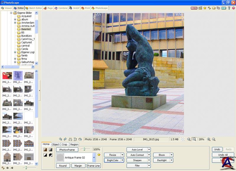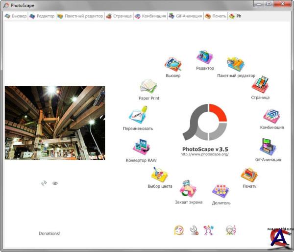 Название: Photoscape 3.5 Тип издания: Бесплатно Назначение: Графический редактор Разработчик: MOOII TECH Год: 2010 Платформа: Windows 2000/XP/2003/Vista/7 Версия: 3,5 Язык интерфейса: Многоязычный Таблетка: не требуется Системные требования: Системные требования: Microsoft Windows 98/Me/NT/2000/XP/Vista Описание: Photoscape 3.1 - это новый, абсолютно бесплатный, многофункциональный графический редактор с широчайшими возможностями. Позволяет просматривать изображения, редактировать графику, обрабатывать файлы в пакетном режиме, конвертировать RAW-файлы, создавать анимированные файлы GIF и еще много другого. Photoscape, кроме вышеперечисленного, позволяет делать скриншоты, определять точные цвета пикселей, настраивать яркость, цветовую насыщенность, настраивать баланс белого, проводить коррекцию контрастности. Программа позволяет создавать рамки, добавлять графический текст, фигуры ссылок, рисовать картинки, обрезать изображения, применять различные фильтры, удалять эффект "красных глаз", ретушировать и многое другое. Доп. информация: Основные характеристики: - Просмотрщик: просмотр папок с фотографиями, слайд-шоу. - Редактор: изменение размера, яркости, цветовая корректировка, баланс белого, коррекция подсветки, фреймы, фигуры, мозаика, добавление текста, кадрирование, фильтры, удаление эффекта красных глаз, блюминг. - Пакетный редактор: Пакетное редактирование нескольких фотографий - Страница: сделать одну фотографию, объединив несколько фотографий на странице - Комбайн: Комбинирование всех возможностей редактора - Анимированные GIF: Возможность создания gif-анимации из нескольких фотографий и редактирование уже готовых - Печать: Печать портретов целиком и по частям, визиток, фотографий на документы - Делитель: Разделяет фотографию на несколько частей - Захват экрана: возможность захвата экрана и сохранение области захвата - Цветовыбор: Увеличивает изображение, для удобного, точного поиска и выбора нужного цвета - Переименование: изменение названий файлов фотографий в пакетном режиме - Raw конвертер: Конвертация RAW в JPG