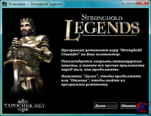 "Stronghold Legends" Год выпуска: 13 Октября 2006 г. Жанр: Strategy (Manage/Busin. / Real-time) / 3D Разработчик: Firefly Studios Издатель: 2K Games Издатель в России: 1C Тип издания: RePack Язык интерфейса: Русский Язык озвучки: Русский Таблетка: Не требуется Версия: 1.0 Системные требования: * Операционная система:Windows 2000/XP * Процессор:с тактовой частотой 1,6 ГГц * Оперативная память:512 Мб * Видеокарта:NVIDIA GeForce3/ATI Radeon 8500 или лучше с 64 Мб видеопамяти (с аппаратным T&L) * Свободное место на жестком диске:2,5 Гб * Звуковая карта:Звуковое устройство совместимое с DirectX 7.0 Описание: Три могучих героя, три смертельных армии. Мощная магия против безжалостной стали. Игрокам предстоит выступить за одного из трех легендарных воинов загадочного Средневековья. Командовать знаменитым королем Артуром и его рыцарями Круглого стола; сражаться вместе с отважным героем «Песни о Нибелунгах» Зигфридом против Гигантов; узнать пугающую правду о жестоком правителе Владе III Цепеше, известном также как Влад Пронзитель и Влад Дракула. Особенности игры: * Двадцать шесть миссий, объединенных в три уникальные кампании. * Мощная осадная техника для штурма и хитроумные ловушки для обороны замка: оборотнеметатели, колометатели, системы туннелей, гарпуны для сражений с драконами. * Четыре многопользовательских режима, включая бой насмерть и состязание под названием «Царь горы».