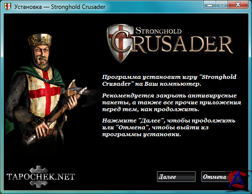 "Stronghold Crusader" Год выпуска: 25 Сентября 2002 г. Жанр: Add-on / Strategy (Manage/Busin. / Real-time) / Isometric Разработчик: Firefly Studios Издатель: Gathering of Developers Издатель в России: 1C Тип издания: RePack Язык интерфейса: Русский Язык озвучки: Русский Таблетка: Не требуется Версия: 1.0 Системные требования: * Операционная система:Windows 98/ME/2000/XP * Процессор:Pentium II 300 МГц * Оперативная память:64 Мб * Видеокарта:DirectX 7.0 совместимая видеокарта с памятью 4 Мб * Свободное место на жестком диске:850 Мб * Звуковая карта:Звуковое устройство совместимое с DirectX 7.0 Описание: "Stronghold Crusader" - это долгожданное продолжение знаменитого бестселлера STRONGHOLD. Это игра, которая сочетает преимущества стратегии в реальном времени и градостроительного симулятора. Талантливые полководцы и храбрые рыцари! Вас ждут раскаленные пески Палестины и неприступные арабские крепости. Вперед, крестовый поход не ждет! Если вас притягивает таинственная и загадочная атмосфера Востока, встаньте под знамена ислама и защитите родные земли от европейских pахватчиков! Особенности игры: * 4 исторические кампании - уникальный шанс попробовать себя в роли Ричарда Львиное Сердце или великого султана Саладина. * "Путь крестоносца" 50 сюжетно связанных миссий. * Более 25 типов воинов. * Встроенный редактор - возможность создавать новые карты и сценарии. * Многопользовательская игра по локальной сети или через Интернет, рассчитанная на 8 игроков.