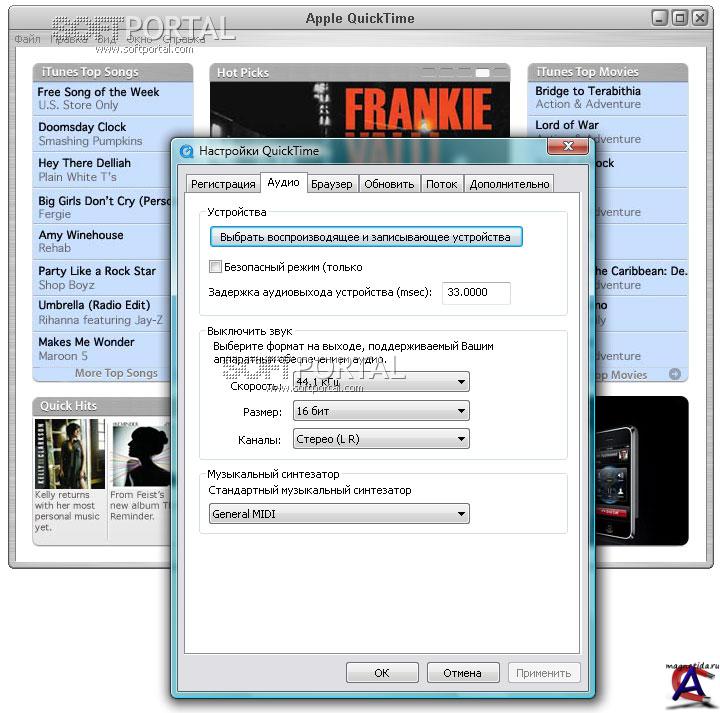 Версия: 7.6.7 Активация: не требуется Язык интерфейса: английский Описание: Quick Time - проигрывает как файлы собственного формата, широко представленного в интернете (QT), так и наиболее распространенные медиаформаты. Во многих случаях незаменим для просмотра потокового видео из Интернет. Поддержка формата MPEG-4. Вы получаете возможность проигрывать и создавать файлы в формате .mp4, которые могут проигрываться на любом MPEG-4 совместимом мультимедийном проигрывателе (например, DivX). Поддержка AAC Audio. Этот формат считается новым словом в области профессиональной компрессии звука, превосходящим по некоторым параметрам существующий MPEG Layer 3 (MP3). Функция Instant-On. Она позволяет получить практически моментальное плавное продолжение воспроизведения для on-line видео и аудио потока при прокрутке его фрагмента. Skip Protection. Патентованная технология, увеличивающая надёжность воспроизведения мультимедийного потокового сигнала при трансляции в Internet. Новый интерфейс и новые дополнительные возможности: видео кодек DVC Pro PAL, поддержка Macromedia Flash 5, новый кодек JPEG 2000 для MacOS X, улучшенная поддержка AppleScript, более удобная работа с закладками в Избранном (Favorites). Системные требования: Операционка Windows Vista, XP