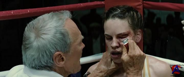 Качество: dvdrip Видео кодек: Xvid 720x304 23.98fps Аудио кодек: Dolby AC3 48000Hz 6ch 448kbps Жанр: драма, спорт, Перевод: дубляж Премьера в мире: 15 декабря 2004 Премьера в РФ: 10 марта 2005, «Гемини Киномир» Рейтинг mpaa: PG-13 - Детям до 13 лет просмотр не желателен Продолжительность: 132 мин. Информация о фильме: Тренер по боксу Фрэнк Данн переживает не лучшие времена. Из-за сложных отношений со своей дочерью он долгое время не позволял себе привязываться к кому-либо, боясь вновь пережить потерю. Однако все меняется, когда в его тренировочном зале появляется Мэгги. Существуя в постоянной борьбе с окружающим миром, Мэгги выработала в себе непоколебимую стойкость духа и волю к победе. Но больше всего на свете она хочет, чтобы в нее поверили.Фрэнк не хочет брать на себя ответственность, однако упорство Мэгги побеждает. В водовороте жизненных перипетий эти двое осознают, что стремятся к одному и тому же: забыть прошлое и обрести семью. Впереди их ждет главное сражение жизни, для которого им потребуется собрать в своих сердцах столько мужества, сколько раньше они и представить себе не могли