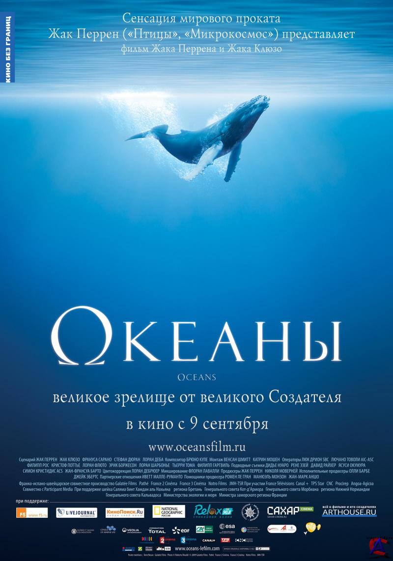 Жанр: драма, документальный, Премьера в мире: 17 октября 2009 Премьера в РФ: 9 сентября 2010, «Кино без границ» Рейтинг mpaa: G - Нет возрастных ограничений Продолжительность: 86 мин. Информация о фильме: Мир вечного движения, мир, где толща воды перемещается в доли секунды, превращает первоначальные планы в хаос. Мир, который равнодушно взирает на суету. Люди уйдут, море же останется навсегда. Почти три четверти земной поверхности покрыты водой. «Океаны» предлагают зрителю заглянуть в волшебный подводный мир, все еще остающимся загадкой для человека.