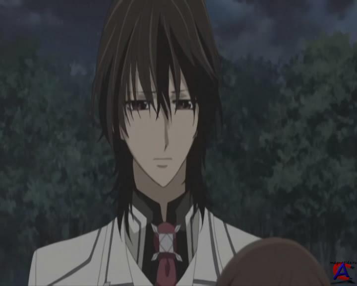 Название эпизодов: 01. The Night of the Vampires (Night) 02. Memories of Blood (Memory) 03. Fangs of Repentance (Fang) 04. Trigger of Conviction (Trigger) 05. Moonlight Feast (Sabbath) 06. Their Choice (Crime) 07. Scarlet Labyrinth (Labyrinth) 08. Gunshot of Lamentation (Blast) 09. Crimson Eyes (Eyes) 10. Princess of Darkness (Prisoner) 11. Compensation of Hope (Deal) 12. Oath of the Purebloods (Pride) 13. Deep Crimson Chains (Ring) Информация о фильме: Академия Кросс славится строгими и странными порядками: ученики посещают занятия посменно. Днем обычные студенты, после захода солнца элитный ночной класс, холеные красавцы в ослепительной белой форме. Разумеется, школьникам не следует знать, что ночные учащиеся вампиры.Для того, чтобы сохранить тайну и обеспечить безопасность дневного курса, приемные дети ректора академии (удочеренная им Юки и взятый на воспитание сирота Зеро) исполняют обязанности старост. От них требуется пресекать любые контакты учащихся разных потоков. А этого непросто добиться, ведь старшеклассниц так и тянет к прекрасным ночным студентам да и вампиры не прочь поближе познакомиться со старшеклассницами!