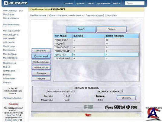 Качество: SATRip Видео кодек: 320x240 (1.33:1), 25 fps, XviD build 46, 358 kbps avg, 0.19 bit/pixel Аудио кодек: 48 kHz, MPEG Layer 3, 2 ch, 128.00 kbps avg Продолжительность: 00:07:42 Перевод: не требуется Формат:AVI Информация о фильме: Заработай голоса в контакте. Заметьте, что чем выше акция, тем больше вы получаете, но так же чем выше акция, тем ниже процент того, что у вас купят такие дорогие акции! Но всё же если вы добавили в друзья богатых на голоса друзей, то у вас большие шансы!