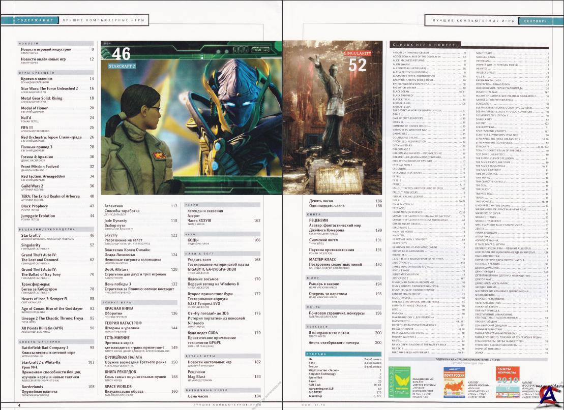Содержание: Игры будущего Medal of Honor Star Wars: The Force Unleashed 2 Red Faction: Armageddon Red Orchestra: Герои Сталинграда Полный привод 3 Guild Wars 2 Front Mission Evolved Metal Gear Solid: Rising Готика 4: Аркания TERA: The Exiled Realm of Arborea FIFA 11 Nail’d Black Prophecy Jumpgate Evolution Dragon Age 2 James Bond 007: Blood Stone Driver: San Francisco Darkspore Рецензии StarСraft 2: Wings of Liberty Singularity Age of Conan: Rise of the Godslayer All Points Bulletin (APB) Трансформеры: Битва за Кибертрон Hearts of Iron 3: Semper Fi Lineage 2 The Chaotic Throne: Freya Grand Theft Auto IV: The Ballad of Gay Tony Grand Theft Auto IV: The Lost and Damned Советы Мастеров StarСraft 2 с White-Ra День победы 3 Battlefield: Bad Company 2 Jade Dynasty Borderlands Атлантика Властелин Колец Онлайн: Осада Лихолесья DotA: Allstars Sky2Fly Вокруг игры Книга рекордов Space Worlds Красная книга Теория катастроф Оружейная палата Есть мнение Ретро Легенды и сказания Hard & Soft Явление восьмое Куда ведет CUDA Второе пришествие бури Угодить всем От «Ну погоди!» до 3DS Другие игры Новости настольных игр Рецензии Пятничный вечер Семь вечера Девять вечера Одиннадцать вечера Книги Рецензии Мастер-класс Юмор Рыцарь в законе Очередь за царством Линия связи Почтовая страничка, конкурсы Некстати Анонс октябрьского номера