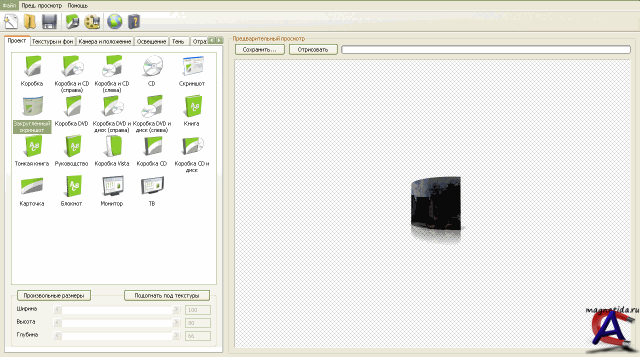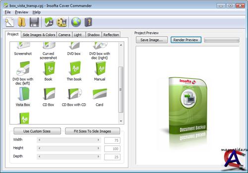 Insofta Cover Commander 3.1.3 Версия: Insofta Cover Commander 3.1.3 Активация: Серийник Язык интерфейса: English, French, German, Hungarian, Italian, Japanese, Russian, Spanish Описание: Cover Commander позволяет создавать профессиональные виртуальные коробки, книги, DVD-коробки, руководства, CD-диски, скриншоты. Всего несколько щелчков мыши все что нужно для выполнения этой работы. Исчерпывающие настройки освещения, камеры, тени, отражения позволяют вам создать изображение любого уровня сложности и увидеть готовый результат в реальном времени в окне предпросмотра. Мастер создания нового проекта выполнит всю "грязную" работу за вас, так что вы сможете сосредоточиться на содержании вашего проекта. В справке подробно расписано как создавать новый проект по шагам с примерами. Программа имеет русский пользовательский интерфейс, так что вам не понадобится знание иностранных языков, вы сможете создавать высококачественные виртуальные упаковки которые будут продавать ваш продукт и помогут стать номером один на рынке. Системные требования: * Операционная система - Windows 98/ME/2000/XP/2003/Vista. * 7 Мб свободного места на жестком диске. * Никаких дополнительных системных компонент не требуется.