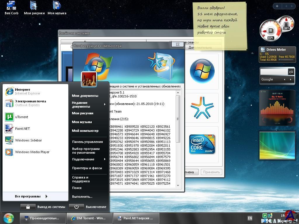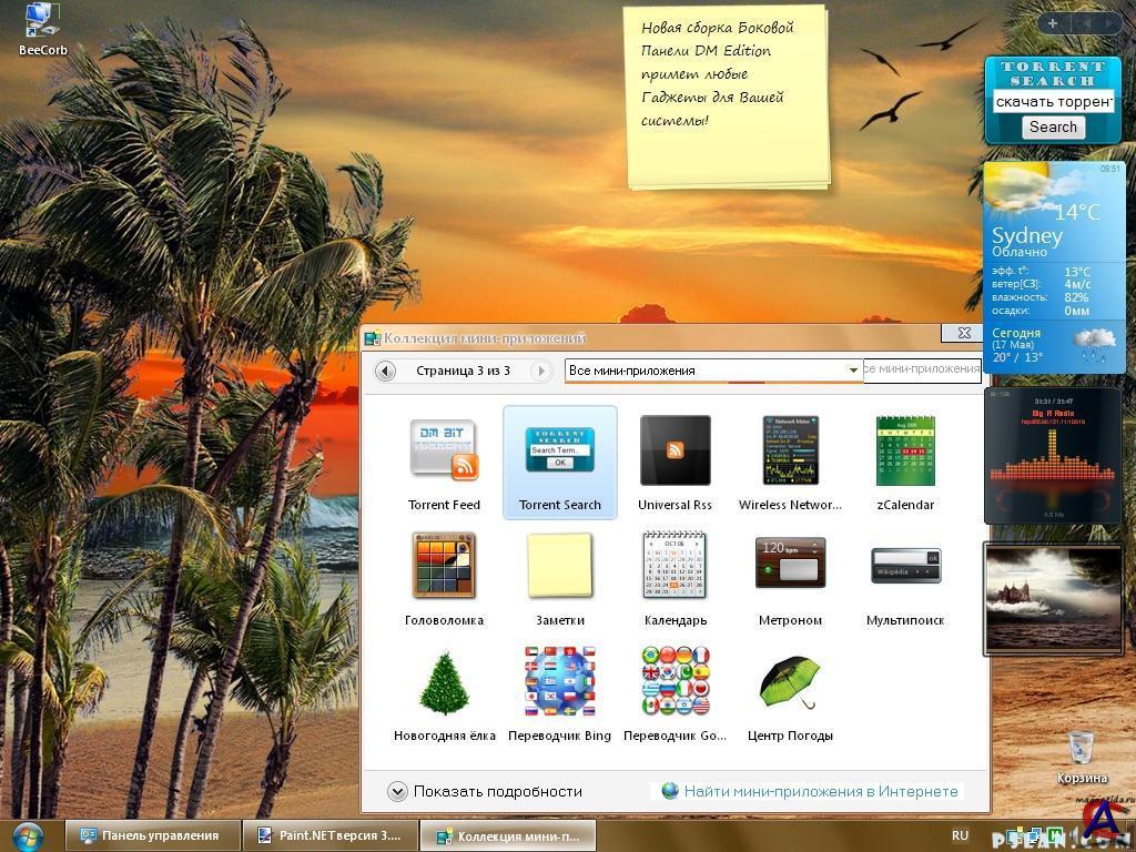 19. Боковая панель в стиле Windows 7, сборка 6.0.6003.20103 от 5.09.2010. В комплект включены самые часто используемые гаджеты для повседневной работы с расчетом на серфинг интернет и мультимедиа. Вы можете самостоятельно удалять и добавлять любые гаджеты.