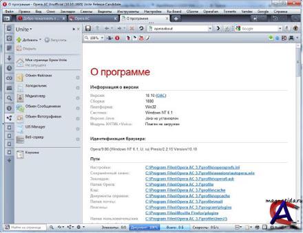 Версия: 3.7.7 Final Активация: не требуется Язык интерфейса: Русский, Английский Системные требования: Windows® 2000/XP/2003/Vista/Se7en, 600MHz CPU, 128 memory, 40 Mb HDD Используя Opera AC, вы почувствуете все прелести как самого браузера Opera, так и использования лучших и необходимых ресурсов сети Интернет. Эта сборка работает из любого места, она абсолютно портативна. А это значит, что теперь можно брать свой любимый браузер куда угодно (на USB носителе), где только есть Windows. Частично работает и на Linux. При этом иметь под рукой всё необходимое для безопасного, анонимного, быстрого, и удобного серфинга в сети Интернет! – За портативность благодарим Lex1 (A.Ruzanov), за то, что написал столь гениально простую утилиту для превращения обычной Opera в портативный браузер – Opera Loader! Вопреки слухам, команда AC Team не вмешивается в исходный код браузера Opera, и никакими средствами не видоизменяет его. Мы лишь стараемся по мере возможности добавлять в браузер авторские утилиты, улучшать открытые файлы браузера (файлы конфигурации), и интегрировать те или иные сервисы которые значительно облегчают работу в сети Интернет! Opera AC - это Opera, с продвинутой конфигурацией.