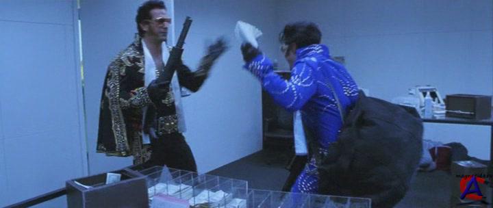 Качество: DVDRip Видео кодек: XviD, 720x304, 1 992 Kbps, 25.000 fps, 24 bits Аудио кодек: AC-3, 448 Kbps, Front: L C R, Surround: L R, 48.0 KHz Жанр: боевик, триллер, комедия, криминал, Перевод: Профессиональный, закадровый Премьера в мире: 20 февраля 2001 Премьера в РФ: 12 сентября 2002, «Космопол ФД» Рейтинг mpaa: R - Лицам до 17 лет обязательно присутствие взрослого Продолжительность: 125 мин. Информация о фильме: Майкл только что вышел из тюрьмы, но долго сидеть без работы ему не придется его тут же подбирает на «большое дело» его знакомый Мерфи. План его прост и одновременно нагл пробравшись на слет подражателей Элвиса Пресли под видом его имитаторов, ограбить одно из самых больших казино в Лас Вегасе.Все проходит довольно гладко, однако, как водится, проблемы начинаются, когда герои начинают делить награбленное. В четко очерченный круг исполнителей неожиданно влезает одинокая мать с сыном, с которыми Майкл познакомился еще до налета, а на закуску выясняется, что Мерфи вообще-то не намерен делиться ни с кем, и своих бывших соратников он устраняет весьма традиционным способом пуля в лоб и все дела.