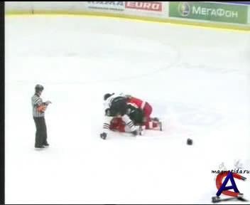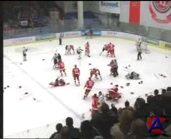 Информация о фильме: Фрагмент программы "Голевая передача" Матч Континентальной хоккейной лиги между чеховским "Витязем" и омским "Авангардом" был прерван уже на 4-й минуте поединка из-за массовой драки игроков обеих команд.!!!