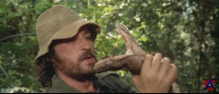 Взято с kinopoisk.ru Дополнение: В первую очередь хочется отметить, что все шоковые сцены сосредоточены в конце фильма. Зрителю предстоит наблюдать кастрацию, зоофилию и другие мерзости. А начало и середина фильма - замечательное приключенческое действо в духе Индианы Джонс, полное смертельных ловушек и диких зверей. Многие ругают Мартино за сцену с обезьяной (ту, где змея поедает маленькую пушистую мартышку), так как обезьяна действительно была съедена и в финальных титрах вы не найдёте надписи «Ни одно животное при съёмках фильма не пострадало». Позднее Умберто Ленци использовал многие сцены из этого фильма в своём творении. Это последняя картина Урсулы Андресс, где зритель может наблюдать её обнаженной. Мартино постарался на славу, в результате чего мы получили добротный приключенческий фильм с несколькими хоррор сценами. На протяжении всей ленты зритель может наблюдать зарисовки «из жизни животных», самой знаменитой сценой из которых стало заглатывание огромным питоном живой невинной обезьянки (этот эпизод потом растиражировали и в других фильмах). Режиссер говорит, что сцена эта была заснята «случайно», однако в покадровом просмотре явно видно, как неумело наложен на изображение «цветочный куст», чтобы скрыть руки ассистента, толкающие бедную обезьянку по направлению к хищному удаву. Другими обязательными атрибутами каннибальского жанра является сцена кастрации, здесь она тоже есть, и эпизоды разделывания и поедания человечины — здесь оные эпизоды также присутствуют, наравне с другими вещами, типа поедания живых змей крупным планом и подобных «каннибальских забав». Не обошлось, естественно, и без первобытной оргии, во время которой мы можем наблюдать не только весьма откровенные кадры женской мастурбации и «первобытного соития», но также сцену изнасилования огромной свиньи (!) не в меру «раздухорившимся» аборигеном С «каннибалами» без ляпов, конечно же, тоже не обошлось, ибо в некоторых сценах отлично видно, что «аборигены» это просто местные жители, небрежно выкрашенные белой краской (в частности, очень хорошо заметна цивилизованность «дикарей» в сцене женской мастурбации, когда крупным планом показывают руки девушки, насилующей белую пленницу, с прекрасно ухоженными длинными ногтями, чуть ли не с лаком...
