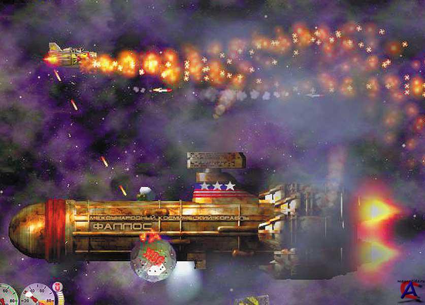 Платформа: PC - Windows, Linux, Mac OS X Тип издания: пиратка Язык интерфейса: Русский Таблетка: не требуется Описание: Игрок начинает в качестве наемника, занимающегося искоренением космической преступности. Но вскоре после начала карьеры игрок встречается со своим бывшим командиром, полковником Проблемщиком (Troubleman), управляющим космическим кораблем под именем Бессилие (Impotence). Оказывается, что Ксокксс (Xoxx), комический диктатор, похитил профессора фон Гамбургера (Von Hamburger). Профессор разрабатывал гигантскую квантовую пушку, которую замышлял использовать в мирных целях. Однако Ксокксс решил использовать пушку для уничтожения всей Вселенной. Также с игроком связывается Эректа фон Гамбургер (Erecta Von Hamburger), дочь профессора. Она поручает игроку спасти её отца. В первых же миссиях игроку требуется добыть для себя лучший истребитель, TMIG-226 из хорошо охраняемых лабораторий FeX. После этого игрок встречается с кораблем "Импотенция" (U.S. Impotence), которая спасает его от пиратов торпедным залпом. Суть большинства миссий сводится к уничтожению войск Ксокксса и уточнению местоположения профессора и квантовой пушки. После многих битв с войсками Ксокксса игрок все-таки спасает профессора, а также находит местоположение пушки под названием «Лорд Хаоса-1» (Lord Chaos Mk 1). Но как только игрок побеждает Ксокксса, тот сбегает в «резервной времястиральной машине» (backup time washing machine), заявляя, что пушка приведена в действие, её действие нельзя предотвратить. Вселенная уничтожается, корабль игрока летит среди обломков, идут титры. Происходит перемещение во времени, которое приводит игрока в первый этап, однако на более высоком уровне сложности. Системные требования: Windows 98/ME/2000/XP/Vista/7 Процессор: Intel Celeron 500 MГц или выше Оперативная память: 128 MB RAM Свободное место: 200 MB DirectX: 9.0b Видеокарта: 32Mб, совместимая с DirectX 9.0b Периферийные устройства: Клавиатура и мышь Запуск: 1. Запустить инстолятор и следовать инструкции 2. Играть