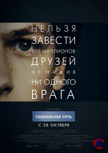 Качество: DVDRip Видео кодек: 720x304 (2.37:1), 25 fps, XviD build 50 ~1289 kbps avg, 0.23 bit/pixel Аудио кодек: 48 kHz, AC3 Dolby Digital, 3/2 (L,C,R,l,r) + LFE ch, ~384.00 kbps avg Жанр: драма, биография, история, Перевод: Профессиональный (полное дублирование) [Лицензия] Премьера в мире: 24 сентября 2010 Премьера в РФ: 28 октября 2010, «WDSSPR» Рейтинг mpaa: PG-13 - Детям до 13 лет просмотр не желателен Продолжительность: 120 мин. Информация о фильме: В фильме рассказывается история создания одной из самых популярных в Интернете социальных сетей Facebook. Оглушительный успех этой сети среди пользователей по всему миру навсегда изменил жизнь студентов-однокурсников гарвардского университета, которые основали ее в 2004 году и за несколько лет стали самыми молодыми мультимиллионерами в США.