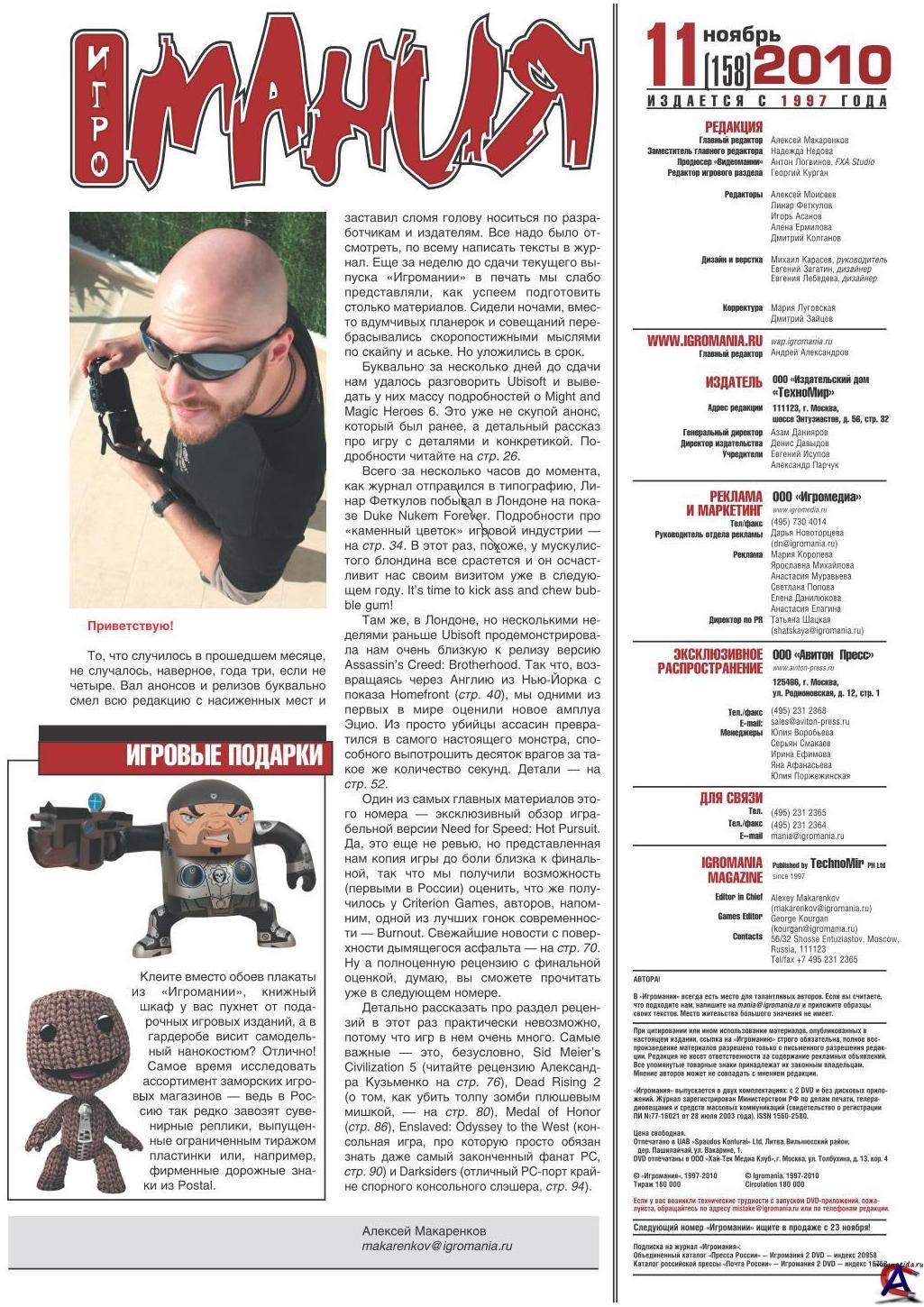 Год выпуска: 2010 Жанр: Игровай журнал Издательство: "Техно Мир" Количество страниц: 212 Качество: Отличное (Игромания Digital) Формат: pdf Описание: "Игромания" — российский игровой, ежемесячный журнал, распространяющийся главным образом в России и странах СНГ. В основу создания «Игромании» поставлена доступность и понятность описываемой информации, с тем, чтобы тексты мог понять самый широкий круг читателей. Вместе с тем журнал не избегает игрового сленга. Главные игры номера: Need for Speed: Hot Pursuit, Duke Nukem Forever, Might & Magic: Heroes 6, Homefront, Assassin"s Creed: Brotherhood, Tropico 4, LittleBigPlanet 2, Sid Meier"s Civilization 5, Dead Rising 2, Medal of Honor, Darksiders: Wrath of War, Tom Clancy"s H.A.W.X. 2, Enslaved: Odyssey to the West