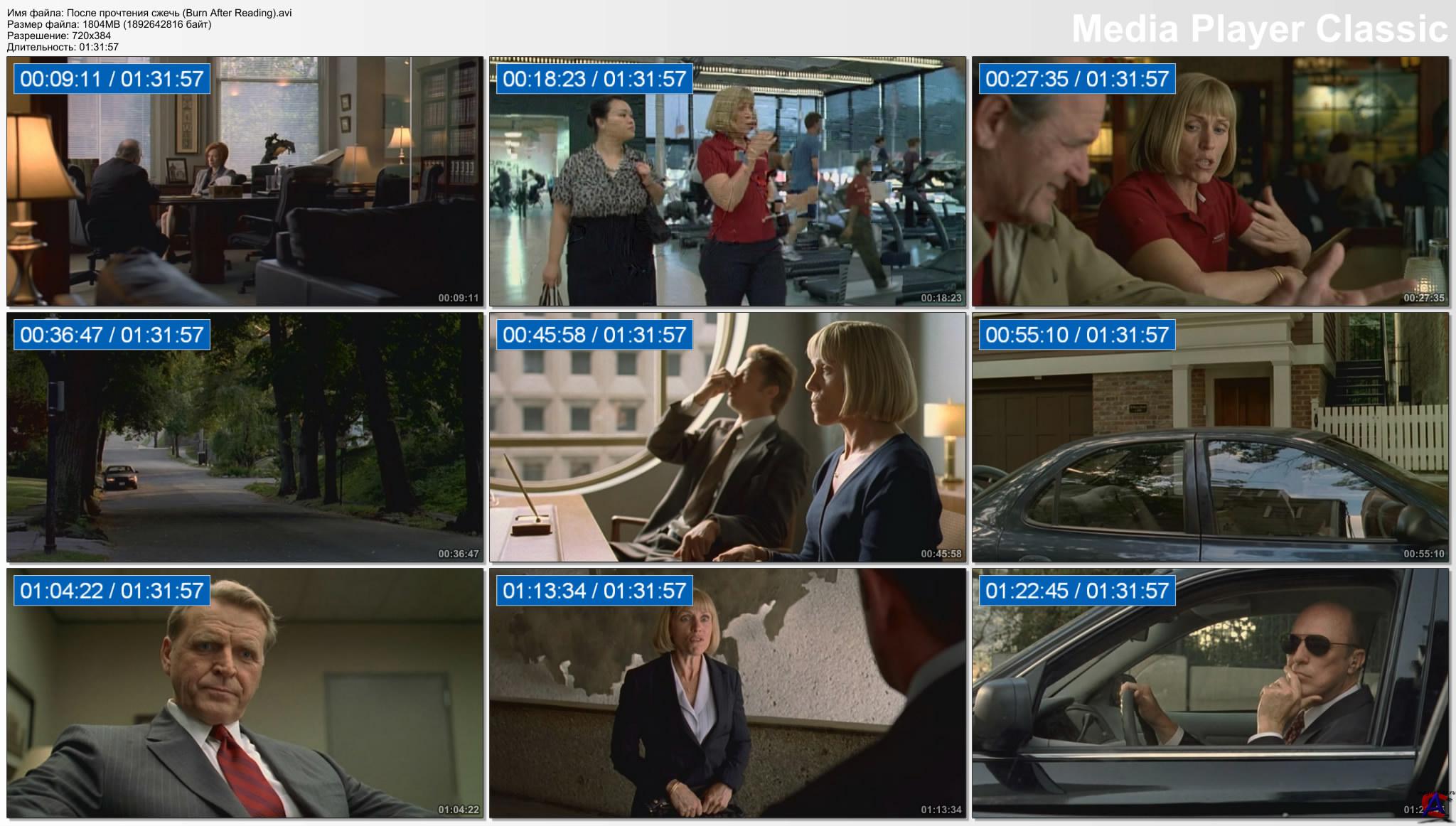 Качество: DVDRip Перевод: Профессиональный (полное дублирование) Video: 720x384 (1.88:1), 25 fps, DivX Codec 6.8.3 ~2286 kbps avg, 0.33 bit/pixel Audio: 48 kHz, AC3 Dolby Digital, 3/2 (L,C,R,l,r) + LFE ch, ~448.00 kbps avg Продолжительность: 01:31:57 Режиссер: Этан Коэн /Ethan Coen/, Джоэль Коэн /Joel Coen/ В ролях: Джордж Клуни /George Clooney/, Фрэнсис Макдорманд /Frances McDormand/, Джон Малкович /John Malkovich/, Тильда Свинтон /Tilda Swinton/, Брэд Питт /Brad Pitt/, Ричард Дженкинс /Richard Jenkins/, Дэвид Раш /David Rasche/, Дж.К. Симмонс /J.K. Simmons/, Олек Крупа /Olek Krupa/, Майкл Кантримэн /Michael Countryman/ Описание: Оззи, агента ЦРУ, уволили с поста начальника Балканского направления. Пытаясь преодолеть кризис, он берется за мемуары, содержащие в том числе и секретную информацию. И надо же было такому случиться, что диск с этими данными был потерян в раздевалке спортивного клуба. Находка попадает в руки легкомысленного тренера Чеда и его не менее легкомысленной подруги Линды. Вместе они решают шантажировать бывшего агента, и начинается такая заварушка, в которой не сможет разобраться даже ЦРУ... IMDB: 7.3 (68,160 votes)