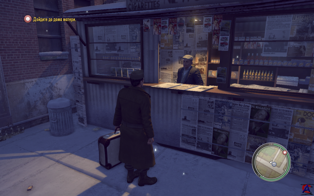 Итак, ты Вито, закончилась вторая мировая. Ты живешь в прекрасном городе и являешься членом одного из крутых кланов. Люди на улицах города живут своей жизнью - разговаривают, читают, гуляют. А Вито должен идти на очередное задание. Неплохо бы зайти в ресторан и как следует подкрепиться перед делом. А после купить шмотки, на случай появления хвоста. Заехать на станцию, заправиться и......за дело. -"Что мне делать с трупами"- думает Вито - "Все просто, сложу их в багажник". Мысли Вито, тяжелы, и музыка звучит трагичная - напоминая об опасности, смерти, и нелегкой жизни его, Вито, некогда бедного мальчика, мечтающего стать богатым и счастливым, а теперь отчаянно-смелого опасного мужчину.