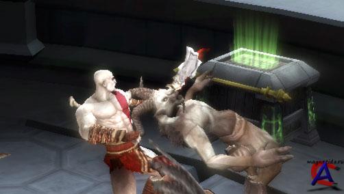 Кратос (Kratos) все ещё собирает красные сферы для улучшения оружия и способностей. Также он собирает глаза Горгоны для увеличения шкалы жизни и перья Феникса для увеличения шкалы маны. Управление в игре осталось неизменным, но из-за меньшего количества кнопок на [psp] используются шифты и аналоговый стик.