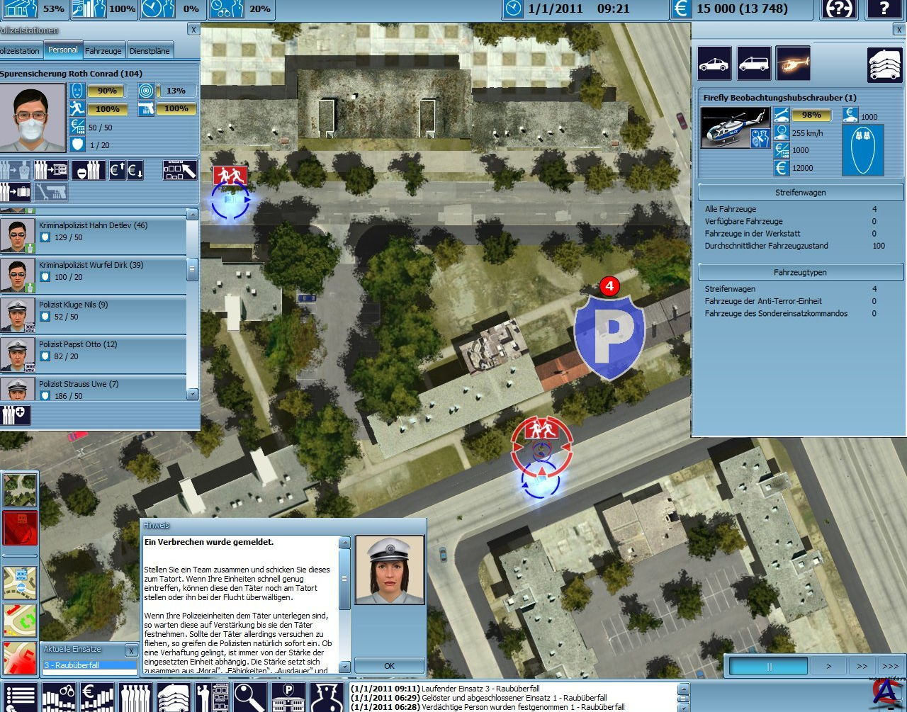 Вы - начальник полиции в контроле полиции европейского города. Координационные патрульные машины, полицейские вертолеты, детективы и судебные команды, чтобы удостовериться законность и правопорядок поддержана, и никакое преступление не остается безнаказанным! Контролируйте свою силу с помощью подробной и реалистической городской карты и будьте подготовлены реагировать на любой случай, который имеет место в Вашем городе. На улицах Вы столкнетесь в течение дня и ночи, захватывающих, захватывающих и реалистических эксплуатационных сценариев – от автомобильных преследований до беспорядков! Трезвый ум и хорошо запланированная стратегия важны! Особенности игры • Уникальная смесь моделирования и стратегии в реальном времени • Преступление Борьбы в современном, растягивающемся городе • Многочисленные ориентиры, такие как аэропорты и стадионы, и разнообразные области, такие как промышленные зоны, банковские районы, трущобы и жилые районы очень важного лица являются всеми в пределах Вашей юрисдикции • Захватывающие операции, такие как полицейские преследования, беспорядки, грабеж и намного больше! • Изменение со дня до ночи определяет объем перевозок и уровень преступности • Управляют Вашим штатом, создают эксплуатационные планы и улучшают оборудование и навыки Ваших полицейских команд • Всесторонний карьерный способ с различными степенями трудности • Реалистические звуки