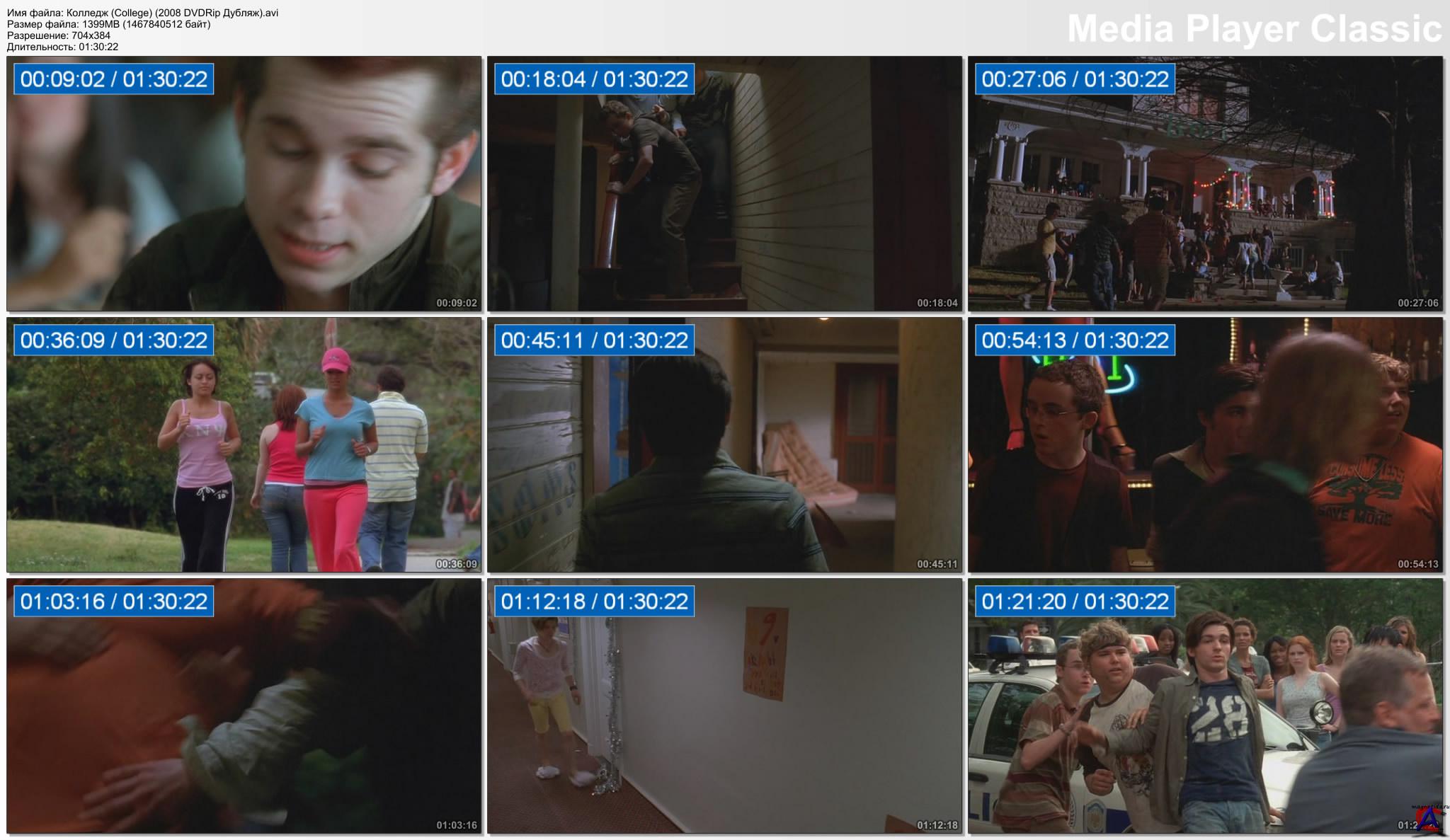 Качество: DVDRip Перевод: Профессиональный (полное дублирование) Видео: XVID 704x384 25.00fps 1707Kbps Аудио: Dolby AC3 48000Hz 6ch 448Kbps Продолжительность: 01:30:23 Режиссер: Деб Хэйгэн В ролях: Дрэйк Белл, Кевин Ковэ, Эндрю Колдуэлл, Хэйли Беннетт, Ник Зэйно, Зак Креггер, Гэри Оуэн, Камиль Манья, Натали Уокер, Райан Пинкстон, Алона Тал, Тодд Волц, Джефф Гэлпин, Элтон ЛеБланк Описание: Главное правило первокурсника: не нажить себе врагов в первый же день в колледже. Похоже, Кэвин и его друзья не знали об этом… В первый же день ребятам удается познакомиться с самыми красивыми студентками и тем самым навлечь на себя гнев лидера студенческого братства. С этого момента скучная на первый взгляд поездка превращается в череду злоключений и умопомрачительных приключений. Пиво из системы пожаротушения, суперклей на унитазах - все это лишь малая часть сюрпризов, которые ожидают лидера студенческого братства, а заодно и весь колледж по приезду Кэвина и его друзей. Ведь скучное время препровождение - это явно не про чуваков