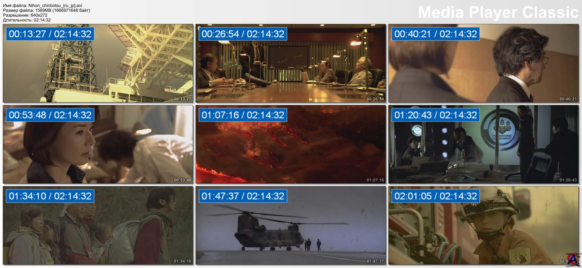 Качество: DVDRip Перевод: Любительский двухголосый + оригинальная японская дорожка Video: 640x272 (2.35:1), 23.976 fps, XviD Final 1.1 (build 41) ~1061 kbps avg, 0.25 bit/pixel Audio [Rus]: 48 kHz, MPEG Layer 3, 2 ch, ~192.00 kbps avg Audio [Jp]: 48 kHz, AC3 Dolby Digital, 3/2 (L,C,R,l,r) + LFE ch, ~384.00 kbps avg Продолжительность: 02:14:32 Режиссер: Синдзи Хигути /Shinji Higuchi/ В ролях: Цуёси Кусанаги /Tsuyoshi Kusanagi/, Ко Сибасаки /Kou Shibasaki/, Эцуси Тоёкава /Etsushi Toyokawa/, Мао Даити /Mao Daichi/, Мицухиро Оикава /Mitsuhiro Oikawa/, Маюко Фукуда /Mayuko Fukuda/, Хидэко Ёсида /Hideko Yoshida/, Акира Эмото /Akira Emoto/, Дзюн Кунимура /Jun Kunimura/, Кодзи Исидзака /Koji Ishizaka/ Описание: Учёные вычислили, что Япония уйдёт под воду в течении 40-ка лет из-за того, что тектоническая плита, находящаяся под Японским архипелагом постепенно перемещается на запад. Однако, доктор Тадороко, который возглавляет группу по исследованию океана, вычисляет, что это произойдёт через 338,58 дней. Он докладывает результаты своих исследований правительству. Но ему никто не верит. И тут территории Японии начинаются разрушительные землетрясения и извержения вулканов, в точности, как и предсказывал Тадокоро. Япония начинает постепенно погружаться в океан. Японские и американские ученые лихорадочно пытаются найти выход и предотвратить гибель страны... «С самого начала можно было предположить, что она будет решена в форме сравнения с одноименным фильмом 1973 года, римейком которого и является картина Синдзи Хигучи. Дело в том, что в основу обеих картин лег хорошо известный в нашей стране бестселлер Сакё Комацу, вызвавший в свое время у себя на Родине много споров и дискуссий. По этой причине фильм 1973 года был серьезным, мрачным и с плохим концом.