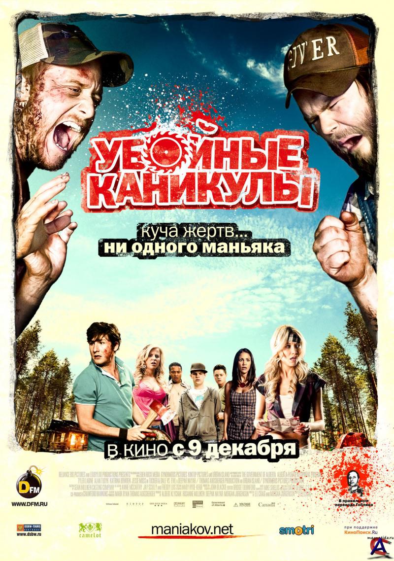 Качество: DVDrip Видео кодек: 720x576@1024x576 (16:9), 25 fps, x264@L3.1, crf, ~1748 kbps avg Аудио кодек: 48 kHz, AC3 Dolby Digital, 3/2 (L,C,R,l,r) + LFE ch, ~448 kbps Жанр: ужасы, комедия, Перевод: Дублированный Премьера в мире: 22 января 2010 Премьера в РФ: 9 декабря 2010, «Вольга» Продолжительность: 89 мин. Информация о фильме: Группа студентов колледжа отправляется за город, чтобы вовсю оторваться на выходных: попить пивка, поплавать в озере и подышать чистым лесным воздухом. Но уже в первый день они сталкиваются с неотесанными фермерами Такером и Дэйлом, также решившими как следует оттянуться на природе. Приняв этих диковатых, но, в сущности, симпатичных ребят за «злобных местных», горожане решают дать деревенщине жесткий отпор. Но с каждым их шагом становится только хуже