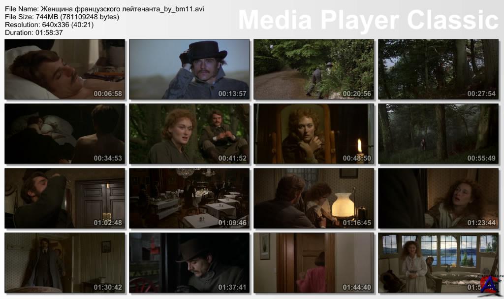Качество: DVDRip Видео кодек: 640x336 (1.90:1), 25 fps, XviD MPEG-4 ~740 kbps avg, 0.14 bit/pixel Аудио кодек: 48 kHz, MPEG Layer 3, 2 ch, ~128.00 kbps avg Жанр: Драма, мелодрама, Перевод: Профессиональный (полное дублирование) Премьера в мире: 1981 Рейтинг mpaa: R - Лицам до 17 лет обязательно присутствие взрослого Продолжительность: 124 мин. Информация о фильме: Фильм основан на романе известного писателя Джона Фаулза. Эта история произошла в 19 веке в Англии. Чарльз Смитсон, богатый и молодой биолог, помолвлен с девушкой. Сара Вудрафф падшая женщина, отвергнутая всеми. Человек из высшего света и женщина, изгнанная из него. Что может сблизить этих людей? Только внезапно вспыхнувшая страсть Но Сара бросает Чарльза. Параллельно с этим развивается другая история. Анна и Майк, молодые актеры, играющие Сару и Чарльза, настолько вживаются в свои роли, что не замечают, как персонажи начинают изменять их собственные судьбы.