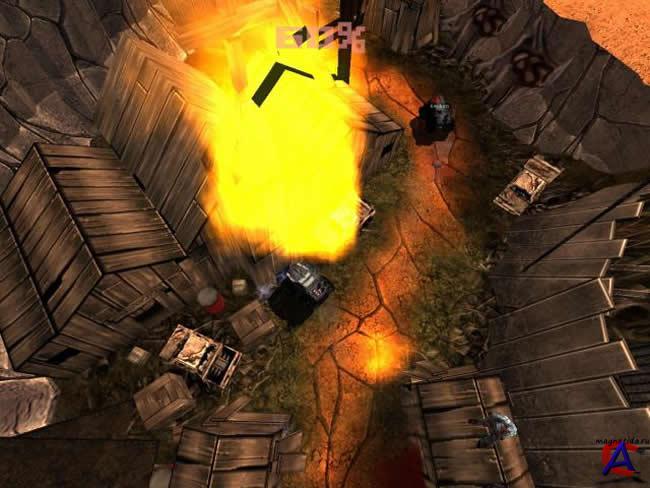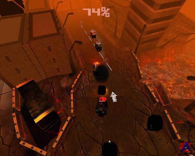 Описание игры: Постапокалиптические гонки с видом сверху. Действия происходят в 2021 году. Везде радиоактивные канавы, мутанты и другие прелести. Машины обвешены тяжёлым оружием. 12 видов оружия, модернизация автомобиля и оружие, 3 лиги, 30 трасс, а также игра в локальной сети.