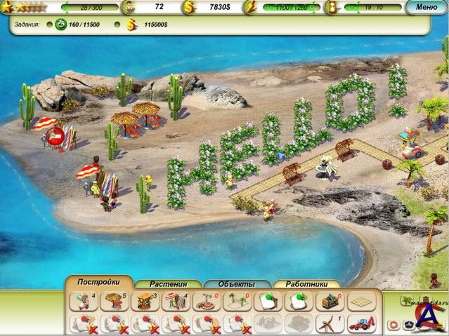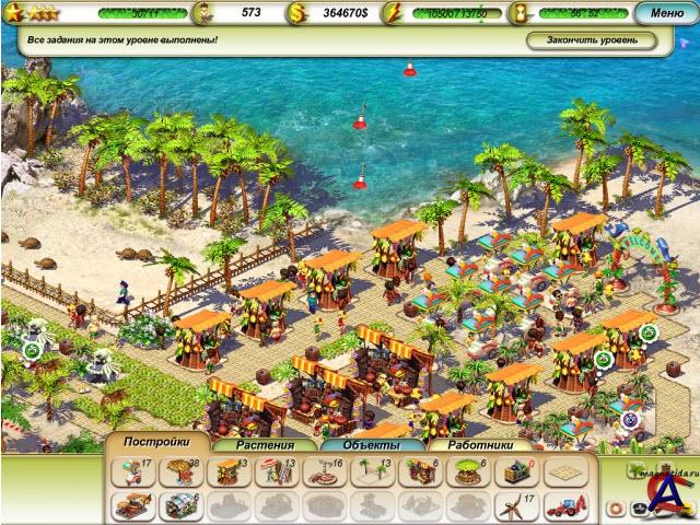 ЭКСКЛЮЗИВНО от NevoSoft.ru Что может быть лучше райских островов и тропического солнца? Когда слева на подносе - запотевший причудливой формы бокал с мохито, справа - волны, накатывающие на берег, парочка серфов на выбор, снизу - удобное кресло, а сверху - зонтик из пальмовых листьев? А что, если вы - начальник лучшего пляжа в мире, который должен предоставить каждому посетителю и шезлонг, и мохито, и вид на море? В увлекательной игре «Пляжный Рай» вам дается возможность заняться непосредственным управлением и благоустройством пляжей чудесной красоты. Сначала на вашем попечении будет маленькая полоска берега рядом с морем, но чем дальше, тем интересней. Шесть настоящих островов ожидают того, кто сможет твердой рукой направить развитие пляжа в сторону благополучия и процветания. С каждым островом связана какая-то своя история, которая будет развиваться одновременно с устройством вашего пляжа. Благодаря абсолютной свободе действий, вы сможете сделать такой пляж, на котором сами захотите побывать. Стройте здания там, где сочтете нужным, проводите дорожки между ними, или пишите ими буквы. Большой выбор растений украсит ваш пляж и порадует посетителей. Управление пляжем это не только планировка дорожек, чудесных аллей и стратегическая расстановка шезлонгов. Самое главное – сделать посетителей счастливыми. Для достижения этой благородной цели вы можете нанять рабочих, которые помогут с уборкой пляжа, ремонтом зданий и прочими хозяйственными делами. Грамотно расставленные работники просто незаменимы в пляжном деле. В игре, кроме прохождения по сюжету с постепенным развитием пляжа, вас ожидает дополнительный режим «Песочница». Вот где придется попотеть Голый остров в самом начале и небольшое количество денег постепенно превращаются с помощью умелого управления и довольных посетителей в развитый пляж без единой мусоринки. Игра «Пляжный Рай» порадует всех без исключения игроков. Яркая графика, полная свобода действий, два режима игры позволят воплотить в жизнь самые невероятные фантазии по устройству и развитию грандиозного пляжного комплекса.