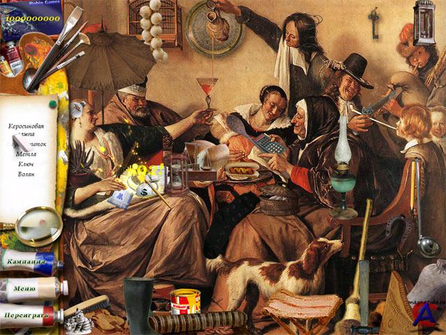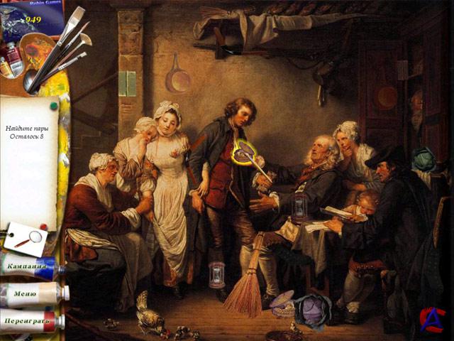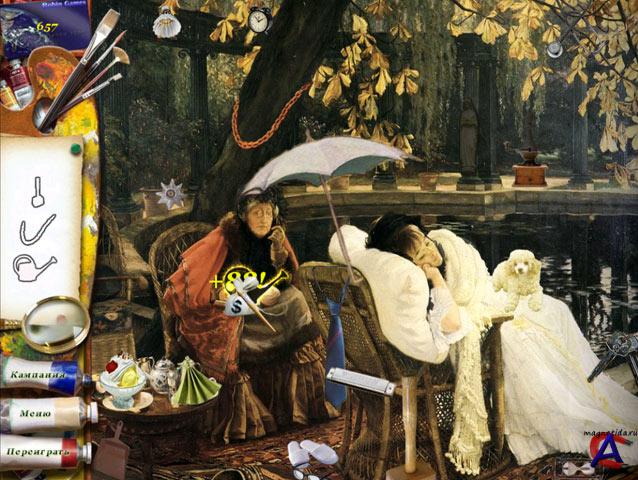 Служба изобразительного спасения В этой игре жанра "я ищу" вы познакомитесь с Ланой. Эта обаятельная девушка совсем недавно окончила школу искусств, а сейчас она занимается реставрацией картин старых мастеров. Что может быть прекраснее, чем возвращать знаменитым полотнам их первозданный облик? Вместе с Ланой вам предстоит справиться с массой головоломок, связанных с поиском предметов. С некоторыми картинами время сыграло очень злую шутку, так что дел будет немало. Работа над полотном будет закончена только тогда, когда все лишние детали будут найдены и удалены. Порой вам придется хорошенько напрягать внимание, чтобы отыскать все нужные предметы. Эта замечательная игра придется по вкусу всем ценителям живописи. Теперь у вас есть уникальная возможность познакомиться с шедеврами мастеров кисти и почувствовать себя настоящим реставратором картин. ЗЫ: Что-то подобное было у "НЕВОСОФТа", и уже давно, "алавар" решил пойти по их стопам, думал, что картины другие, оказалось нет, те же самые.