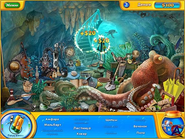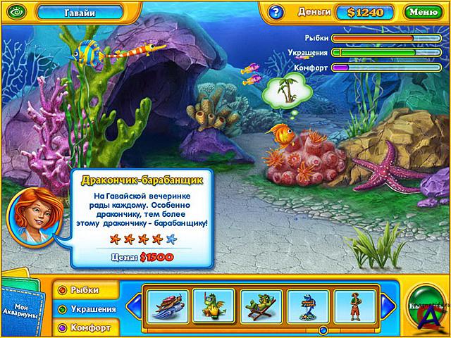 Фишдом H2O. Подводная одиссея. Системные требования для игры Фишдом H2O. Подводная одиссея: PII-600 / 64M RAM / 16M Video 3D, Windows XP, DirectX 9.0 Занимательная океанология Красочный бизнес-симулятор жанра "поиск предметов", который познакомит вас с Дженнифер. Она вот-вот закончит обучение в Университете Охраны Природы, поэтому настало время подумать о дальнейшей карьере. Джен давно мечтает о работе в одном крупном океанариуме, но чтобы попасть туда, нужно сделать что-то действительно выдающееся. В качестве вступительного экзамена Дженнифер решила обустроить свой аквариум и населить его рыбками. На покупку необходимого оборудования и разной морской живности требуются деньги — но где же их взять? К счастью, на морском дне спрятано множество предметов, которые можно поднять на поверхность и продать коллекционерам. Джен отлично ныряет, но без вашей помощи ей не найти все нужные вещи! Эта игра соединила в себе два жанра: поиск предметов и экономический симулятор. Вас ждет изящная графика и увлекательные задания, от которых невозможно оторваться! ЗЫ: Самые лучшие казуальные игры только у алавар и невософт. А главное не требует высоких параметров компьютера. Правда, они лишь распространители игр, но плохих игр у них не бывает.